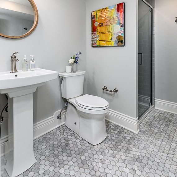 Floors feature Skybridge™ in Gray SY98* 12 x 24 inch tile. (This product is no longer available.)
