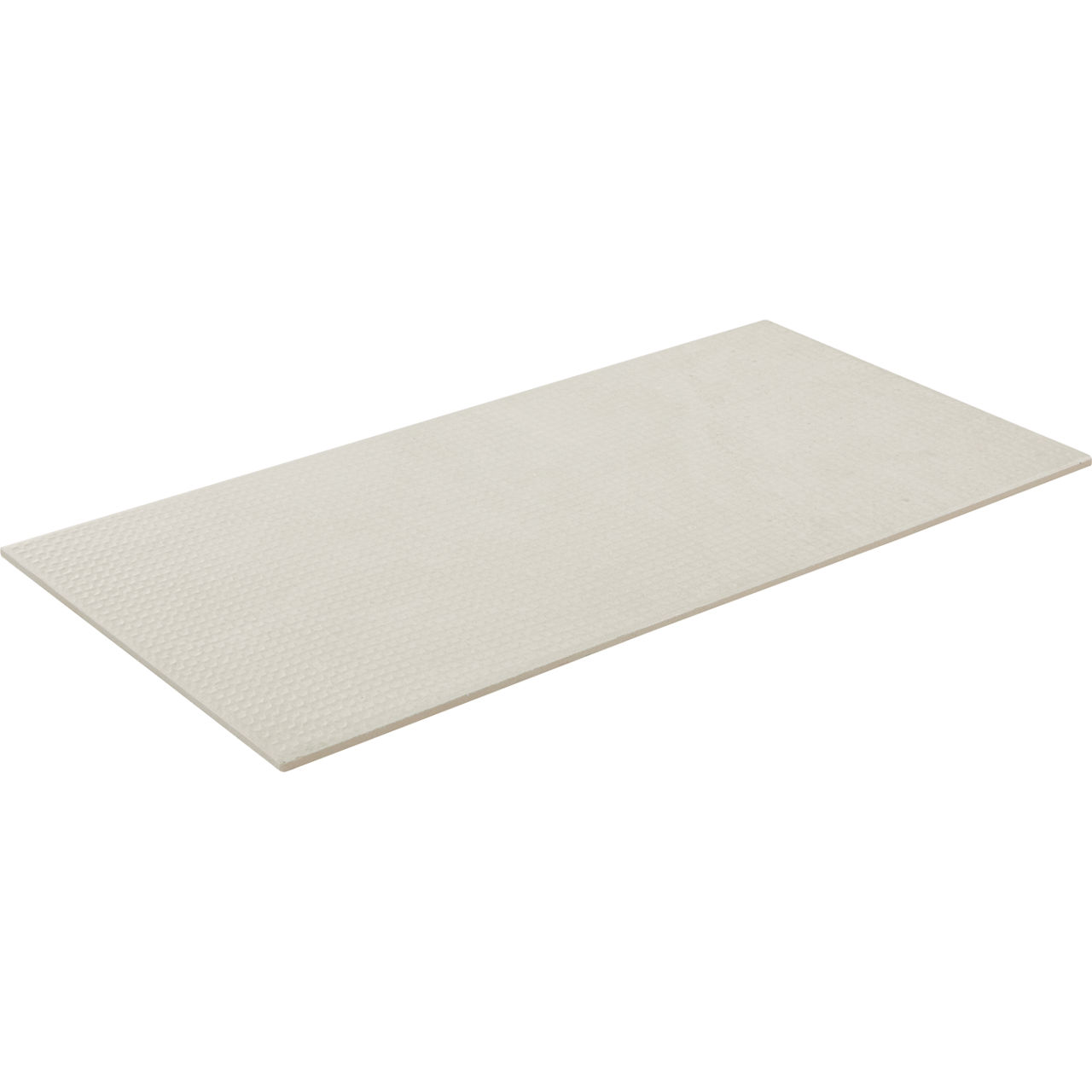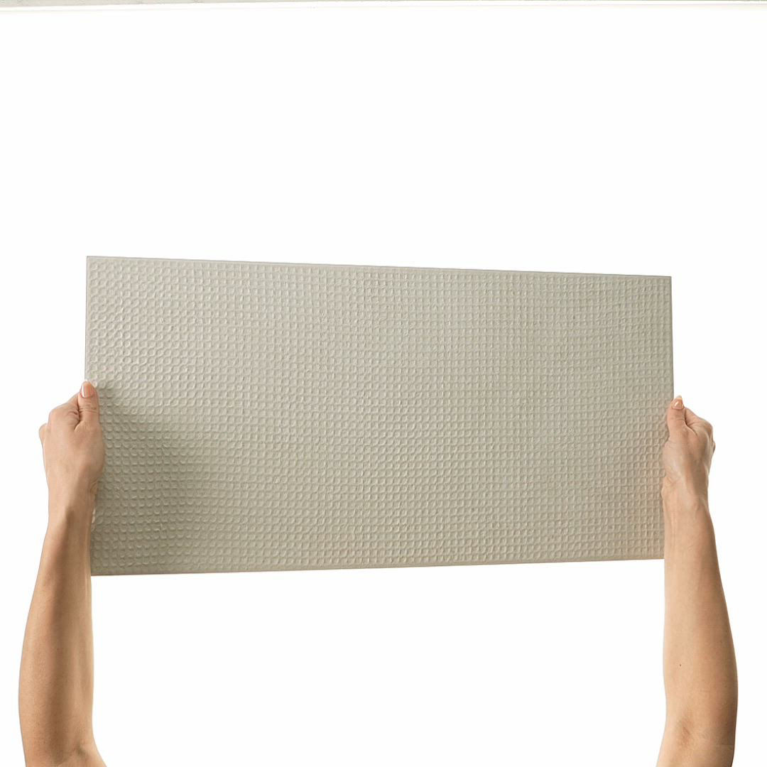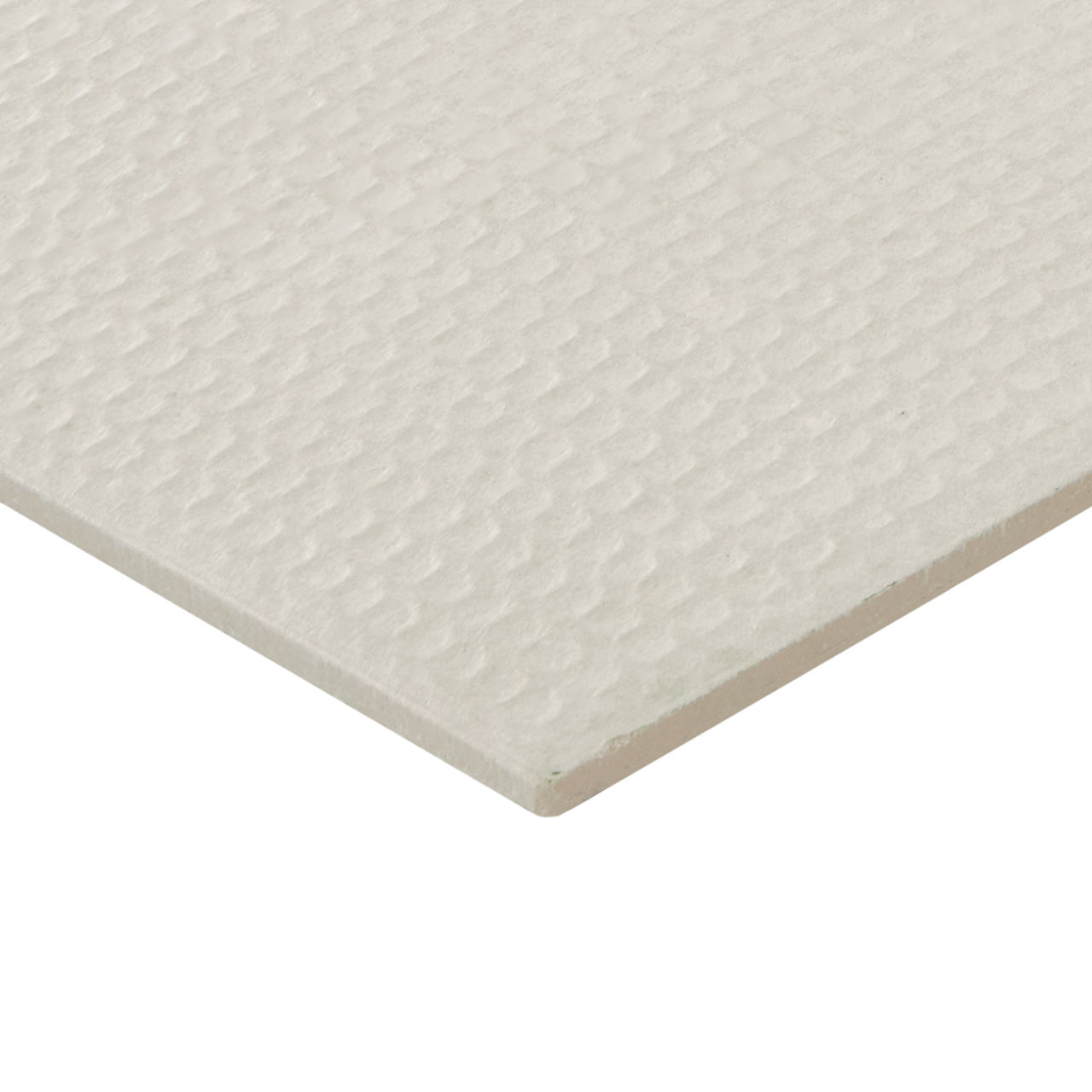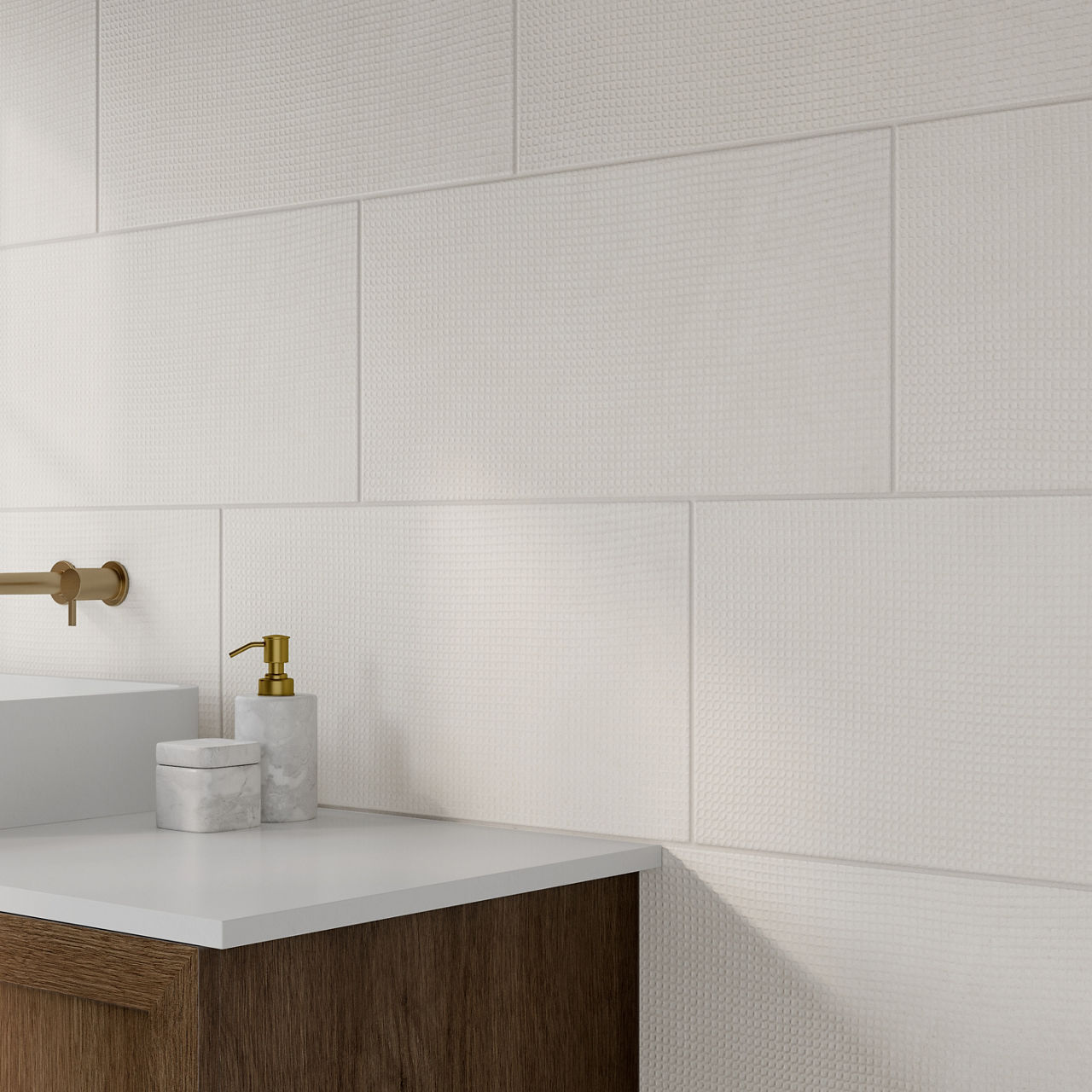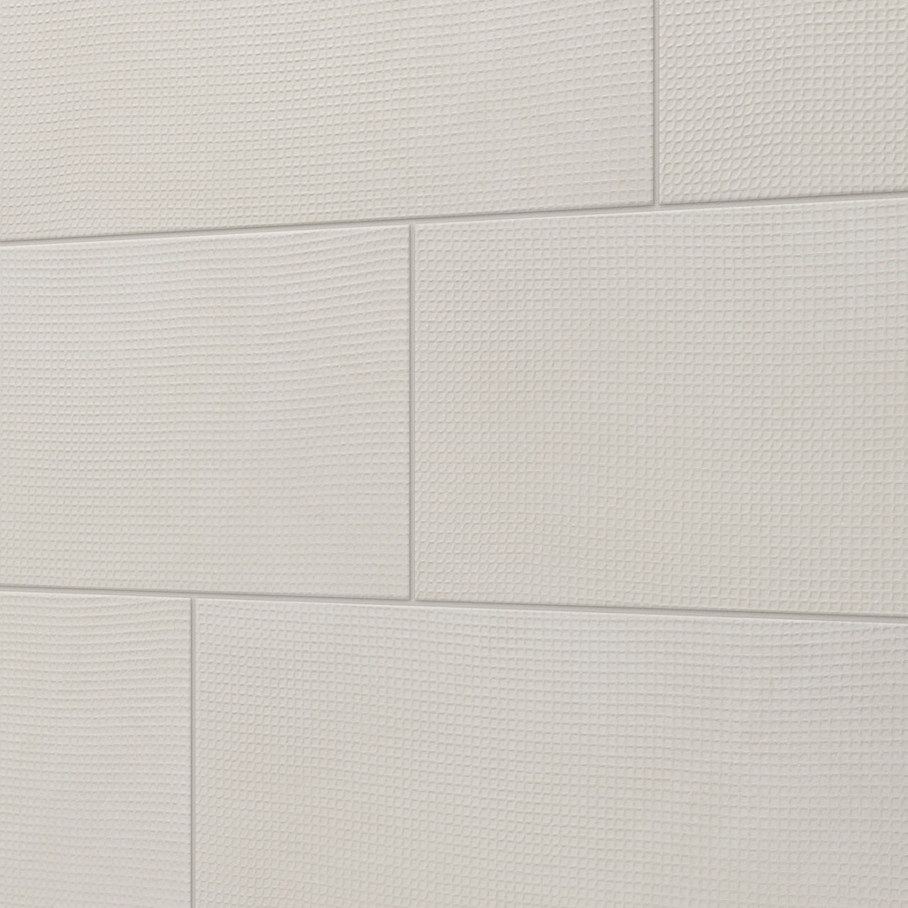 This white concrete-look porcelain tile adds woven texture and dimensional interest for modern floors and walls.