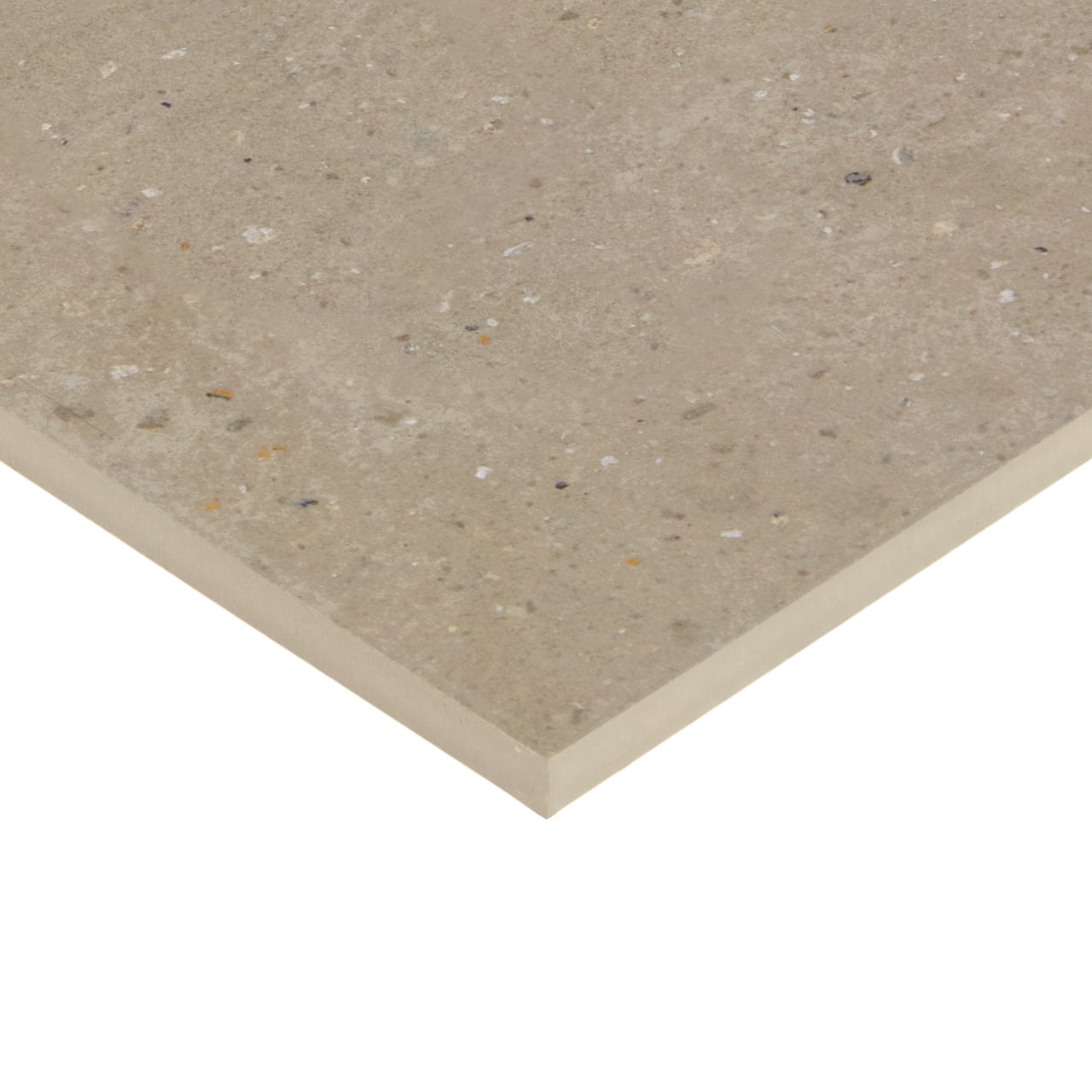 This beige concrete-look porcelain tile pairs fine pebbling with matte durability for floors, walls, and backsplashes.