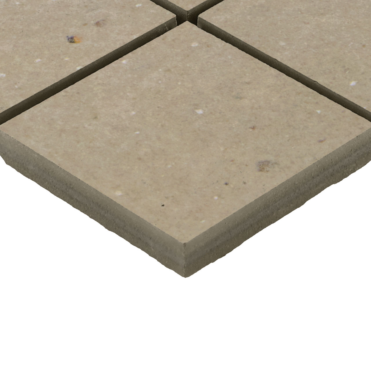 This beige concrete-look porcelain mosaic tile provides a clean 2x2 format with durable style for showers and backsplashes.
