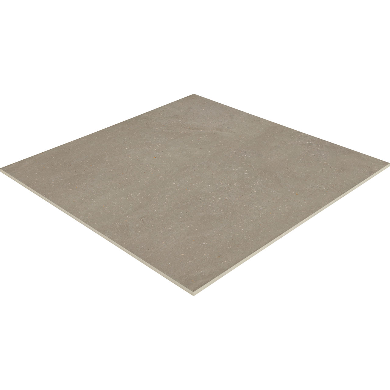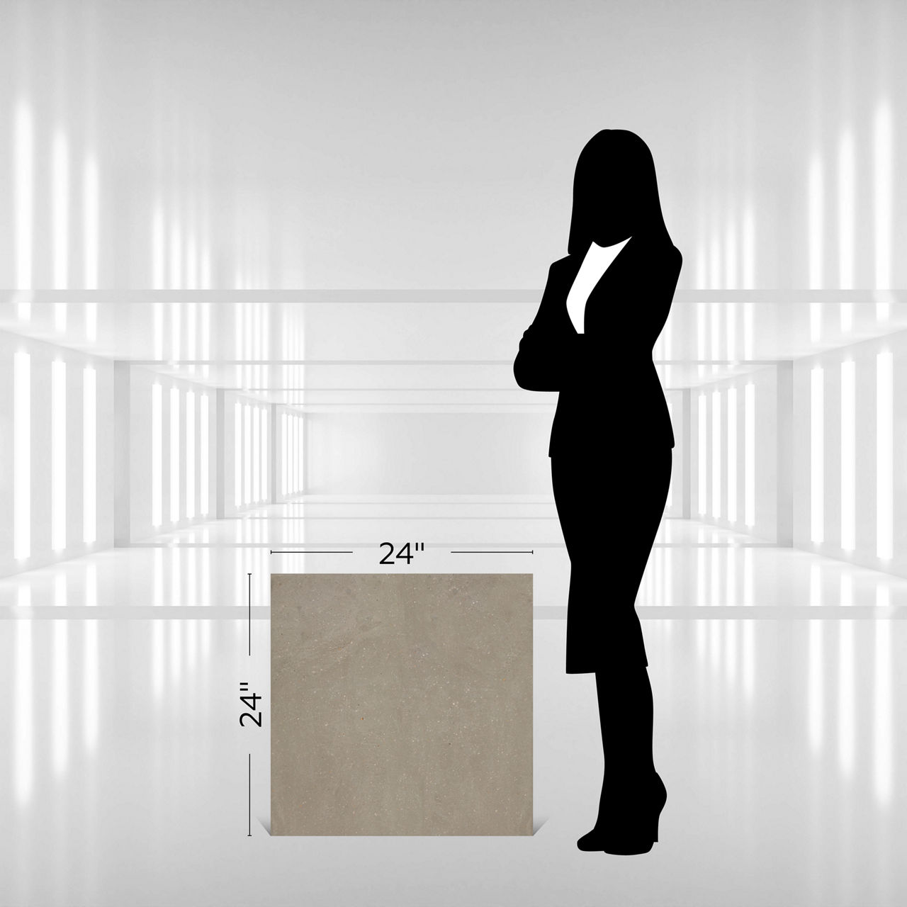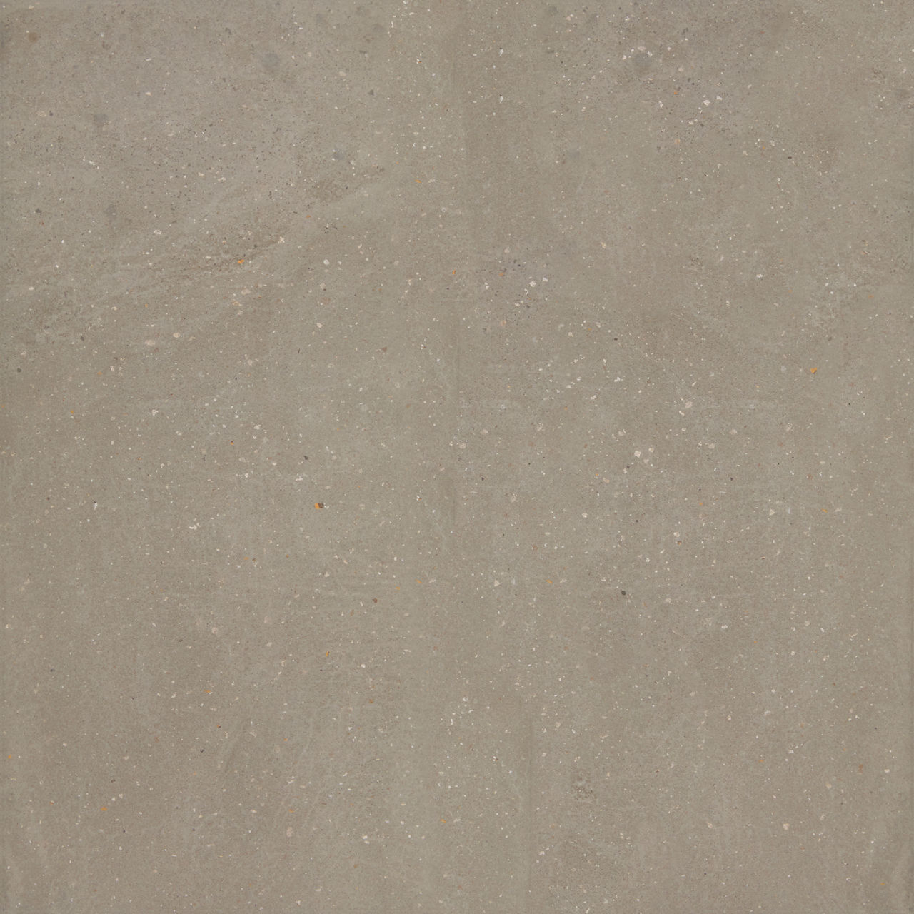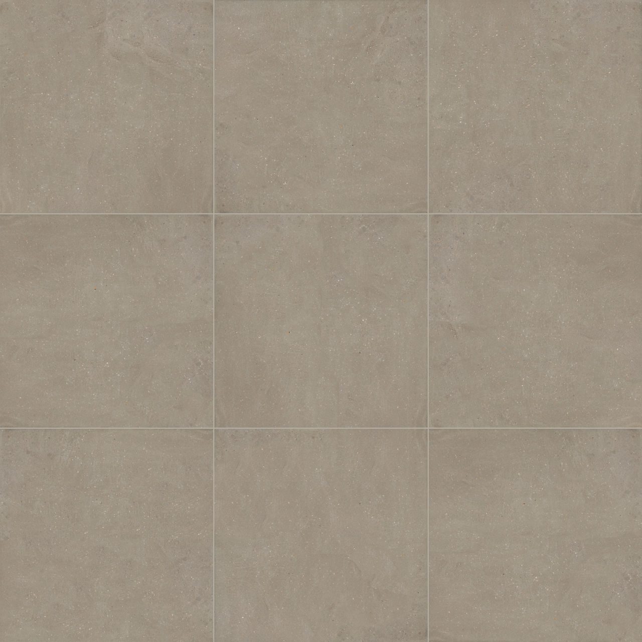 Taupe concrete-look porcelain tile in Greige. A 24x24 matte tile with fine pebbling for modern, minimalist spaces.