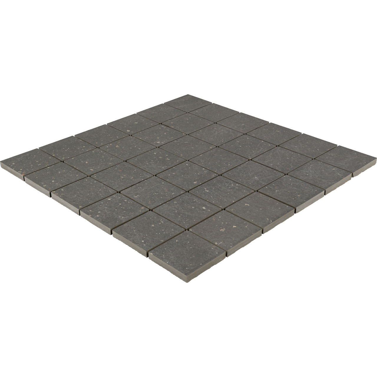 Black concrete-look porcelain mosaic tile in Incognito. A 2x2 matte mosaic with straight joint layout for showers and backsplashes.