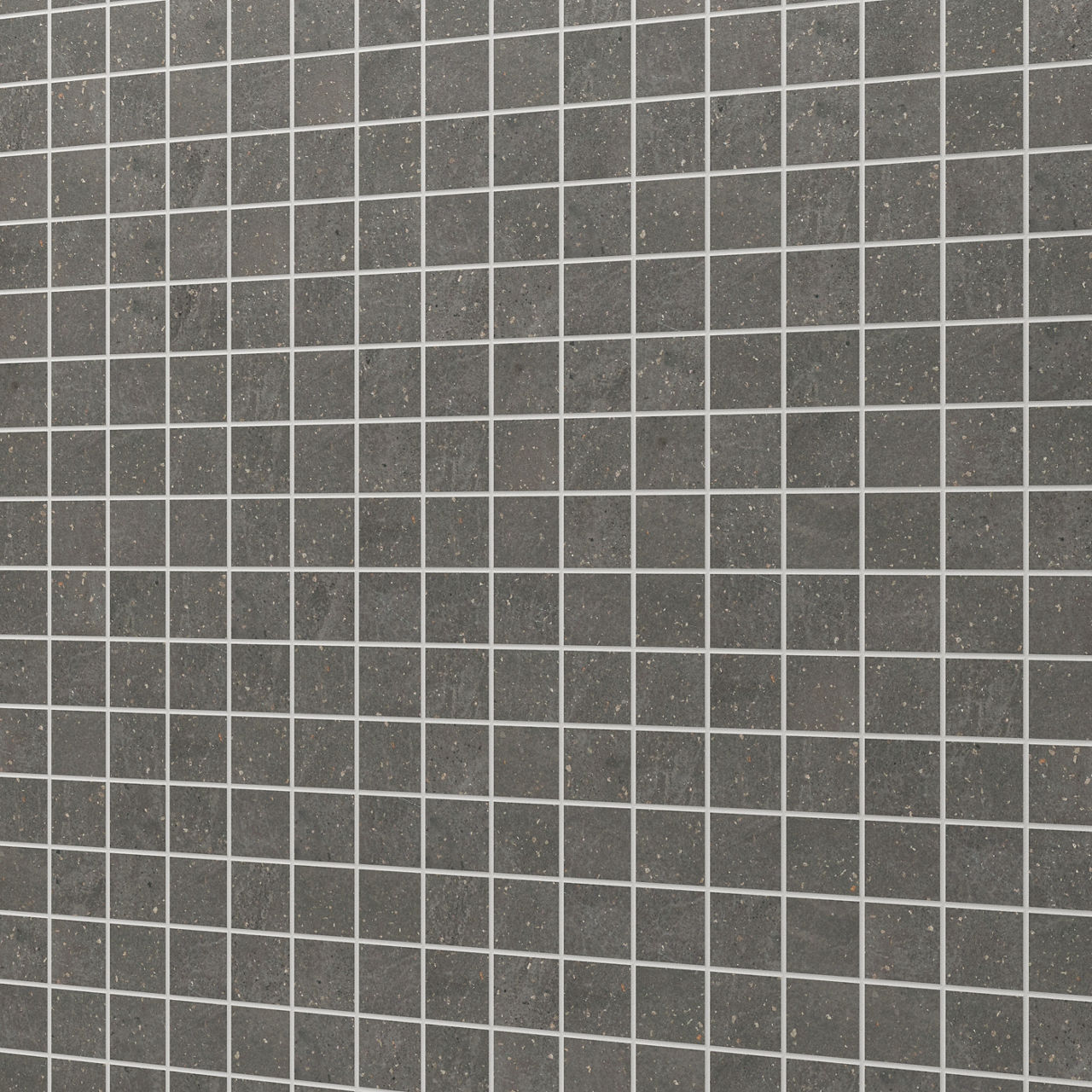 Exposition Incognito 2x2 matte black ColorBody porcelain mosaic tile features a straight joint design with a contemporary concrete look and fine pebbling detail. Designed in a 2x2 format, it offers a clean, modern aesthetic. Its matte finish enhances a natural look, making it ideal for showers, floors, and backsplashes. A perfect choice for modern and minimalist spaces.