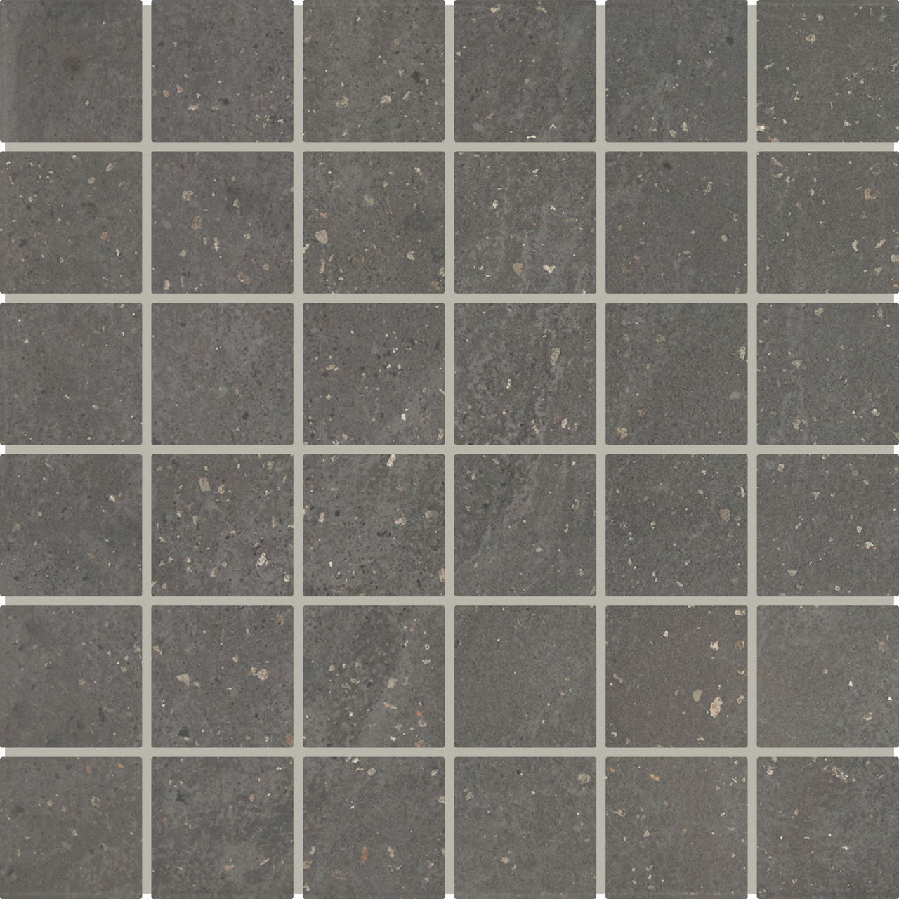 This black concrete-look porcelain mosaic tile provides a clean 2x2 format with durable style for showers and backsplashes.