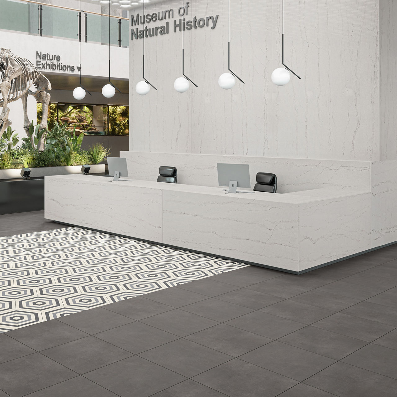 - Classic 12 x 24, 18 x 18 and 12 x 12 floor tile formats and a 2 x 4 brick-joint mosaic