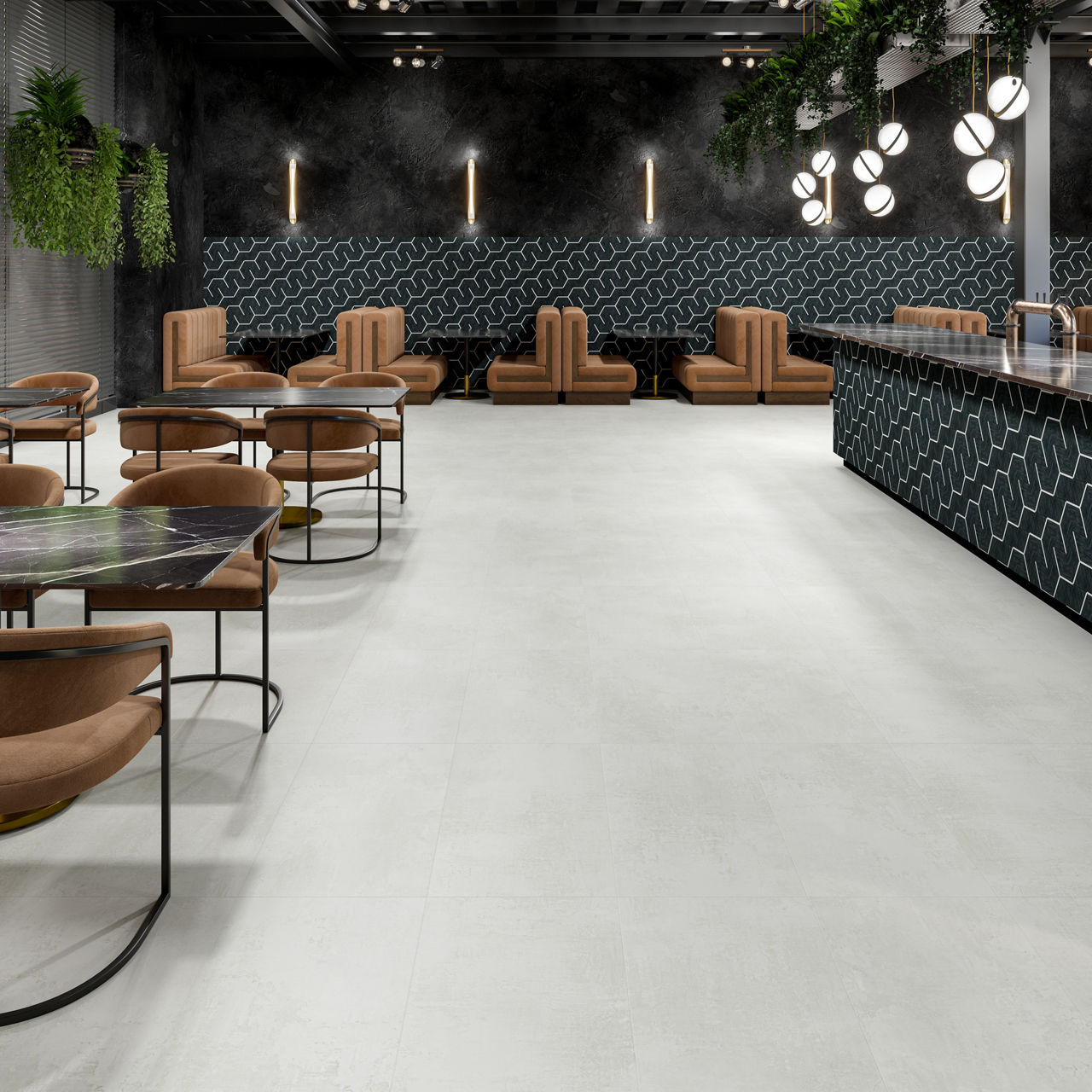 This concrete-look luxury vinyl tile delivers an industrial aesthetic with subtle variation and durable waterproof performance for commercial interiors. Each SKU features unique visual variation for added design authenticity.