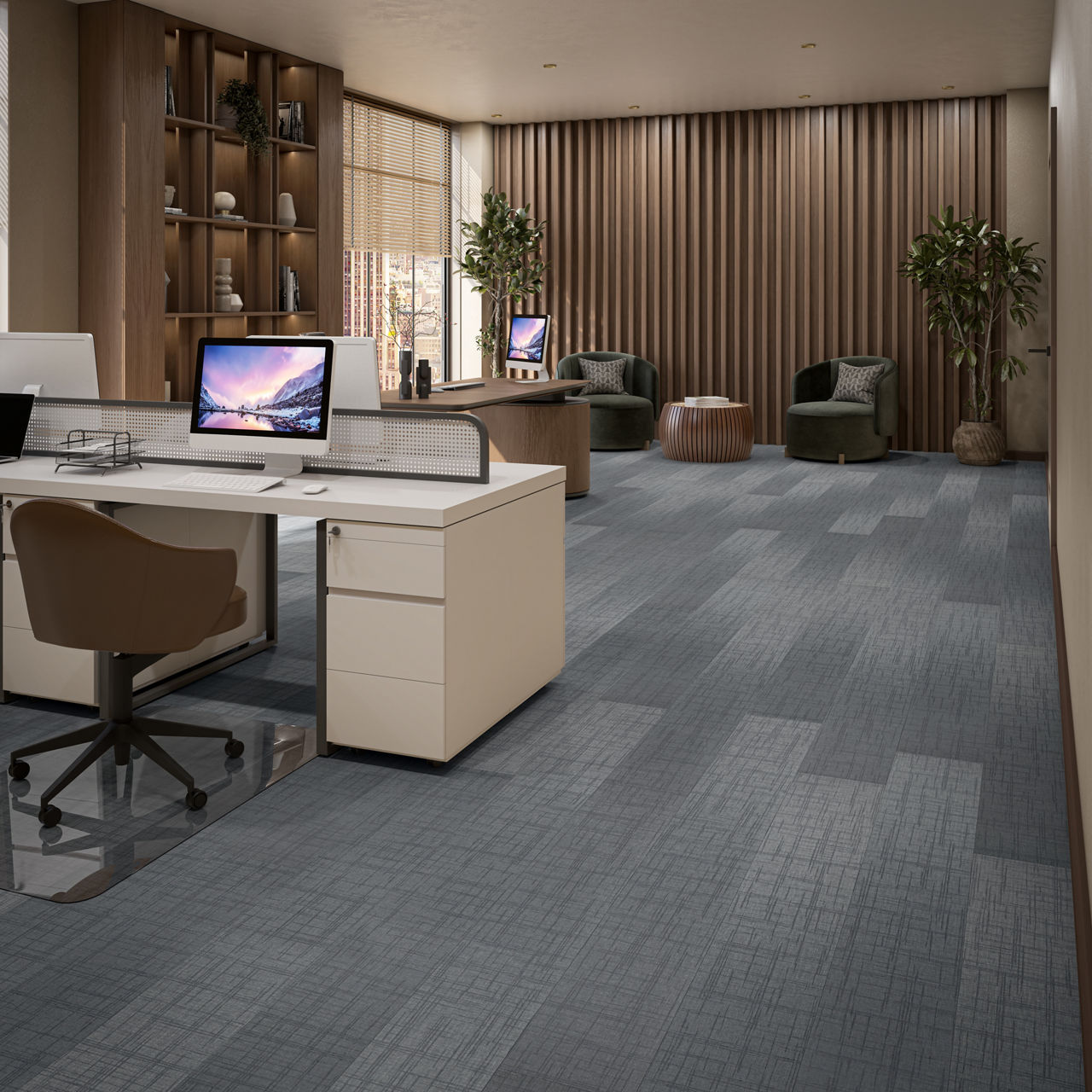 Multimedia Wool 9X72 TitanGuard luxury vinyl tile features a fabric look design with embossed texture. Designed in a 9X72 format, it offers durability and modern style. Its TitanGuard finish enhances performance, making it ideal for commercial floors. A perfect choice for contemporary interiors. Fine surface variation adds a tailored, textile-like character unique to this design.