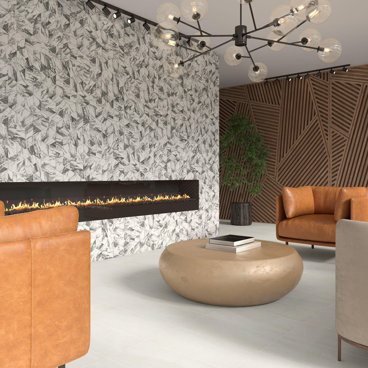 Designed to coordinate seamlessly with Panoramic Porcelain Surfaces, Panoramic Duet features large-format porcelain tile and corresponding mosaics for statement-making design. Use the complementary visuals to create seamless feature walls, showers, and fireplaces with fewer grout lines and a continuous flow. The result is high-impact scale with practical performance for residential and commercial spaces.