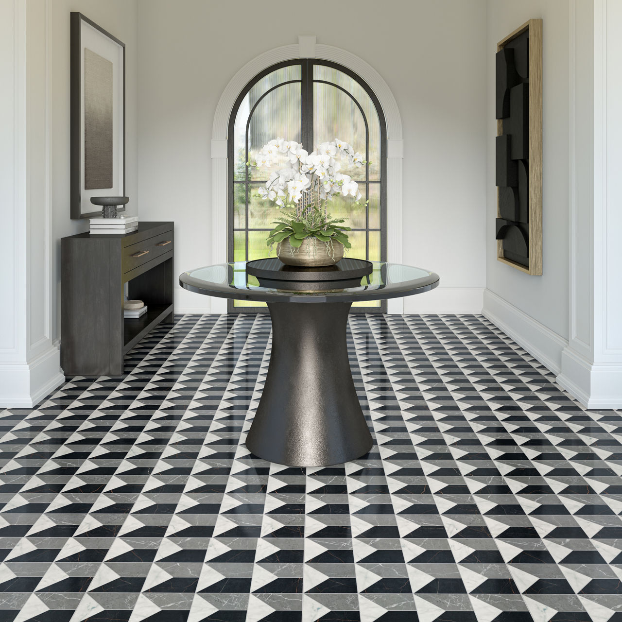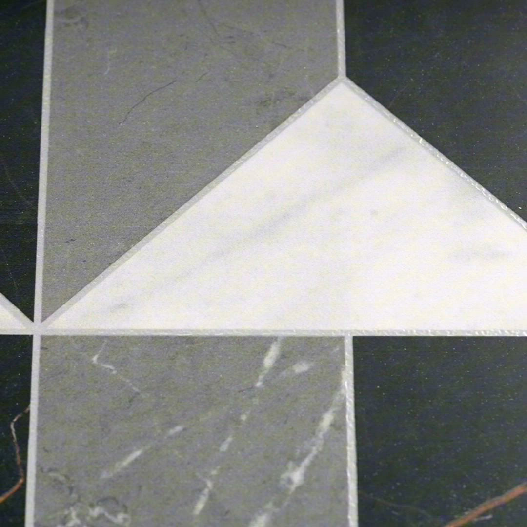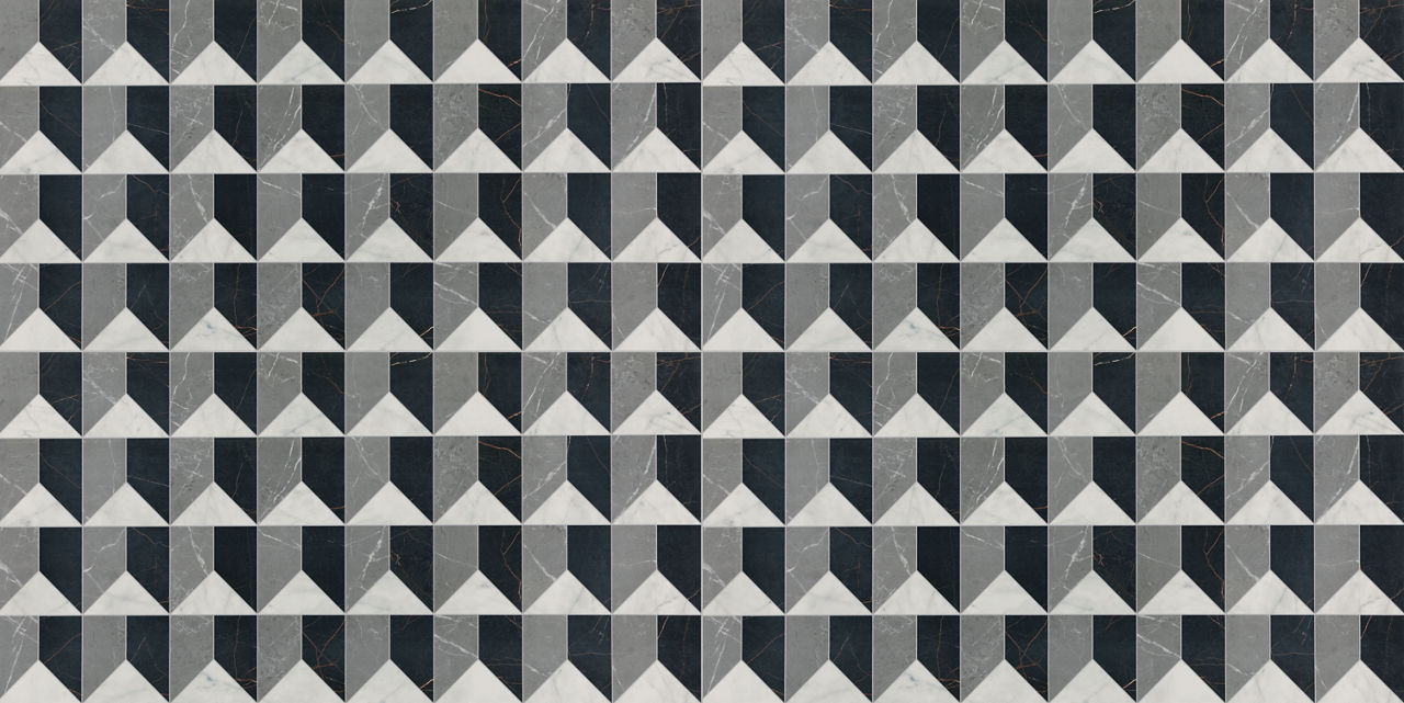 Elevate your space with Sovran, a large-format art deco tile that blends the look of marble elegance with porcelain strength. Available in eight striking patterns, this art deco floor tile brings timeless luxury and seamless style to every room.