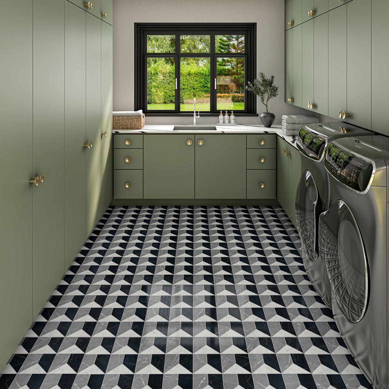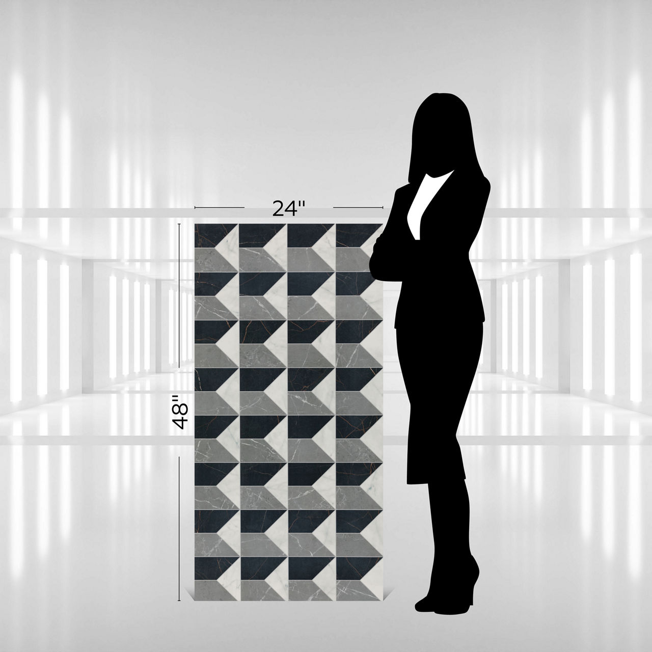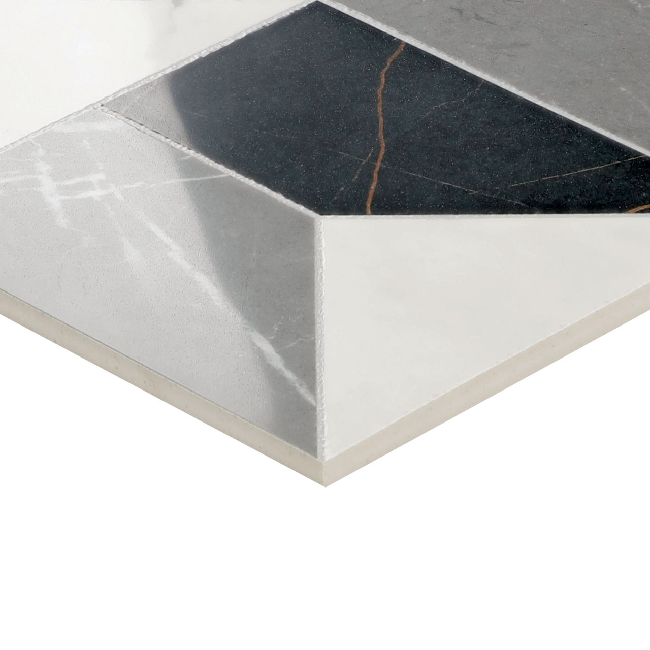 Elevate your space with Sovran, a large-format art deco tile that blends the look of marble elegance with porcelain strength. Available in eight striking patterns, this art deco floor tile brings timeless luxury and seamless style to every room.