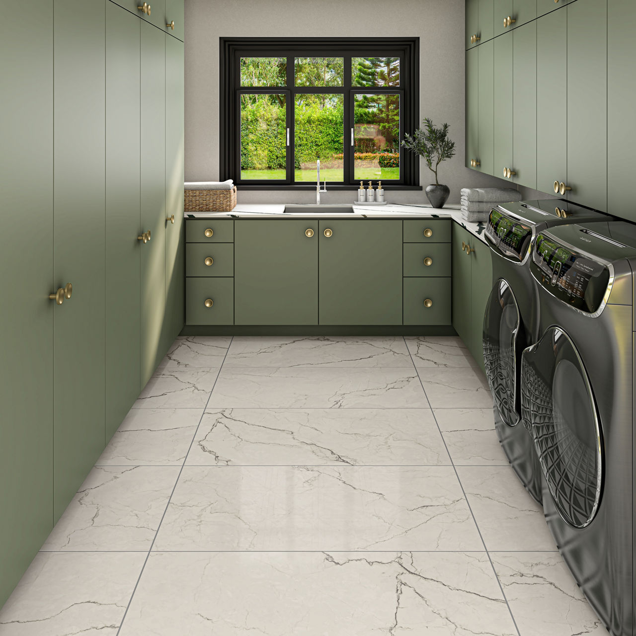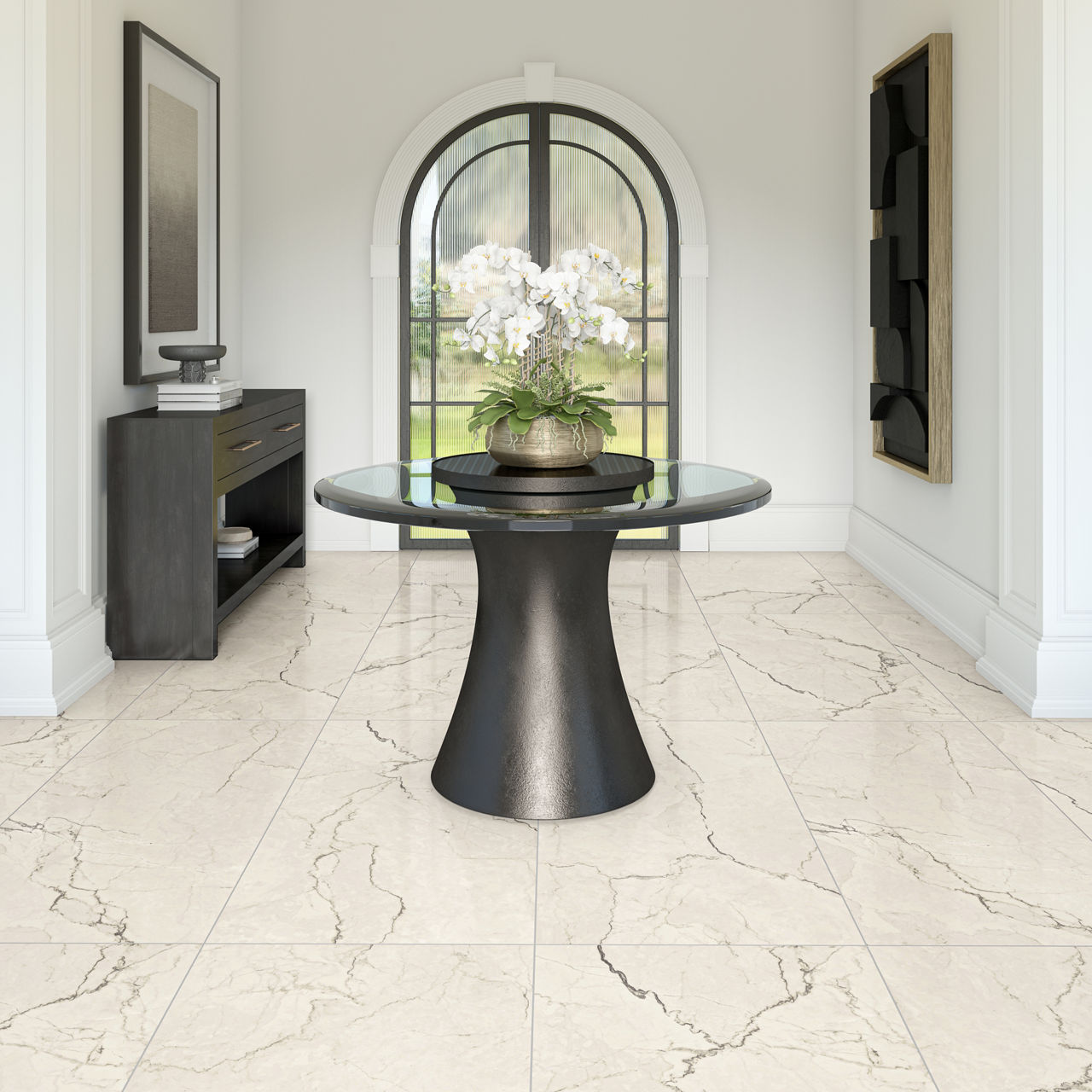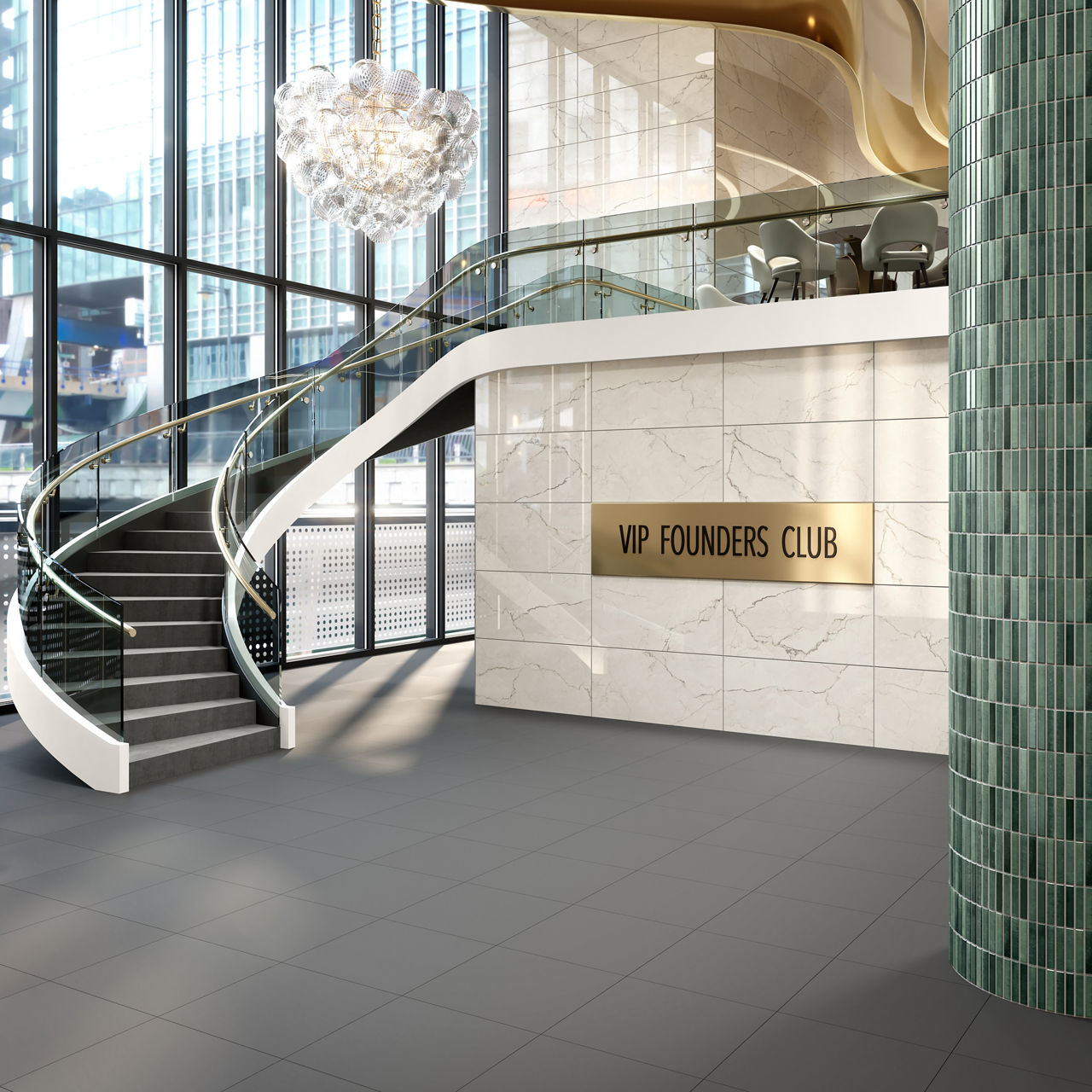Elevate your space with Sovran, a large-format art deco tile that blends the look of marble elegance with porcelain strength. Available in eight striking patterns, this art deco floor tile brings timeless luxury and seamless style to every room.