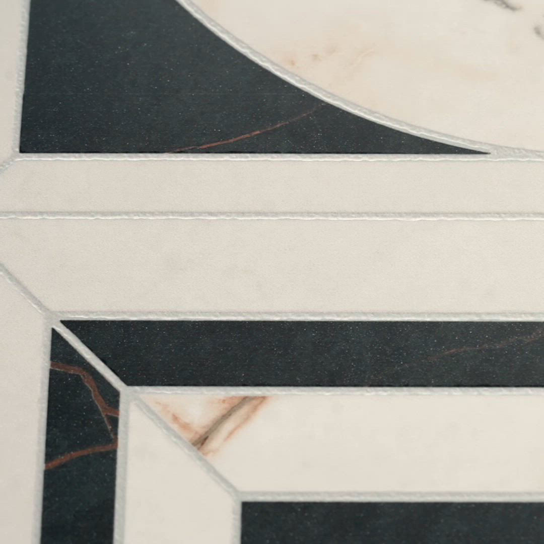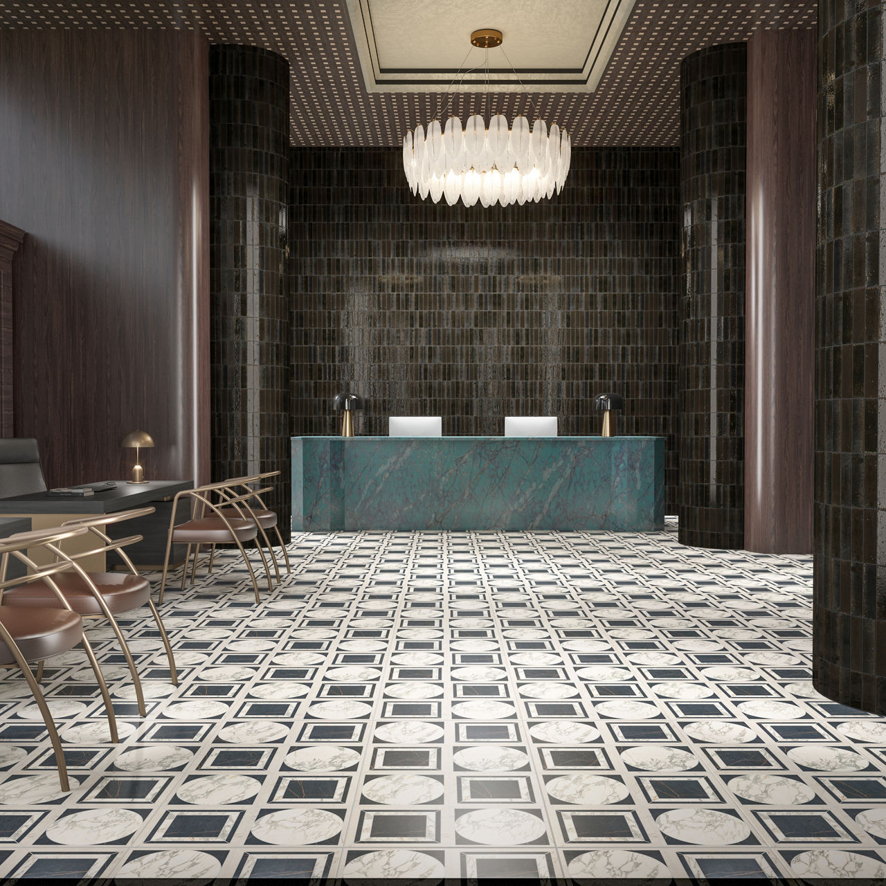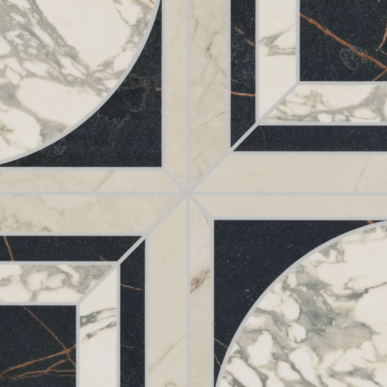 Elevate your space with Sovran, a large-format art deco tile that blends the look of marble elegance with porcelain strength. Available in eight striking patterns, this art deco floor tile brings timeless luxury and seamless style to every room.