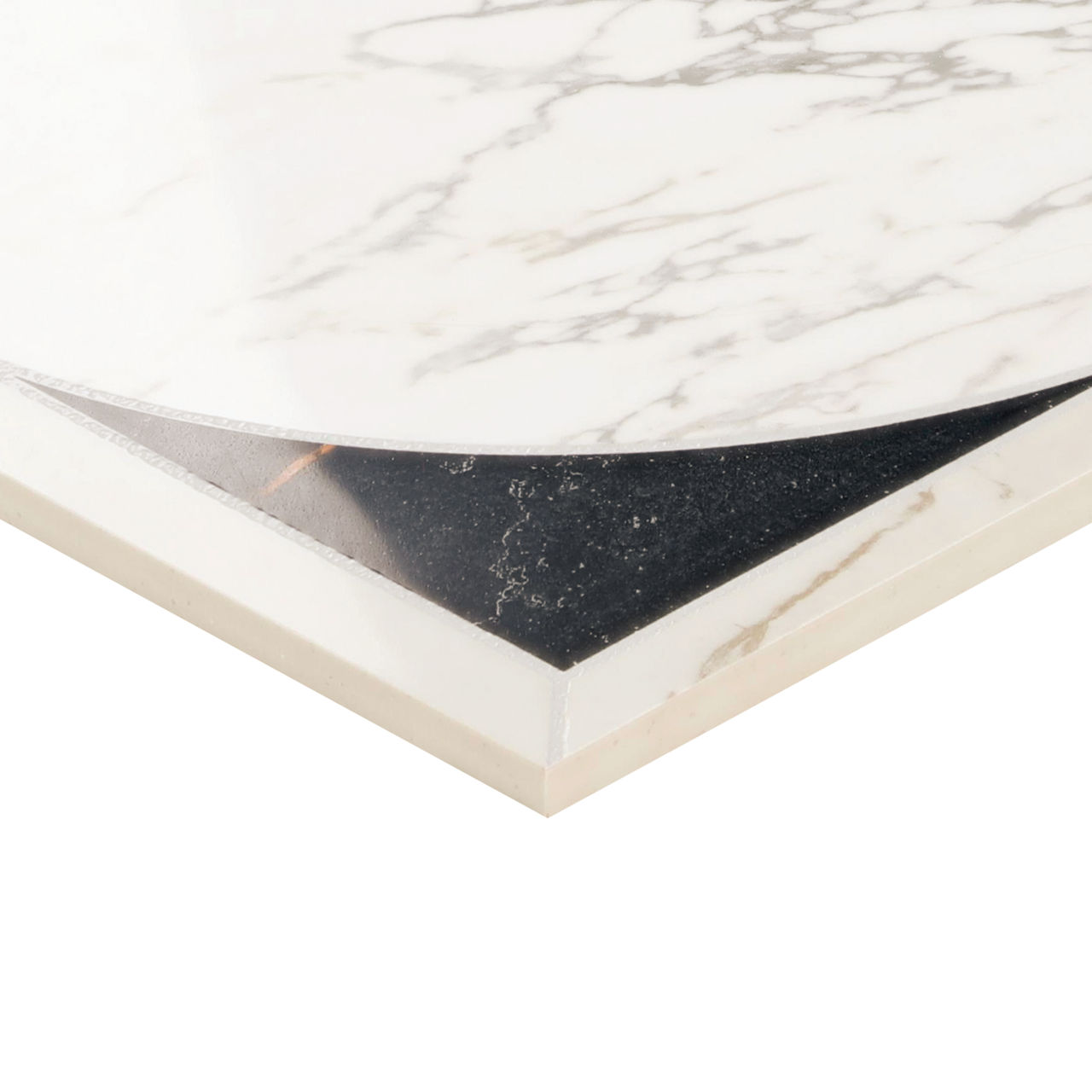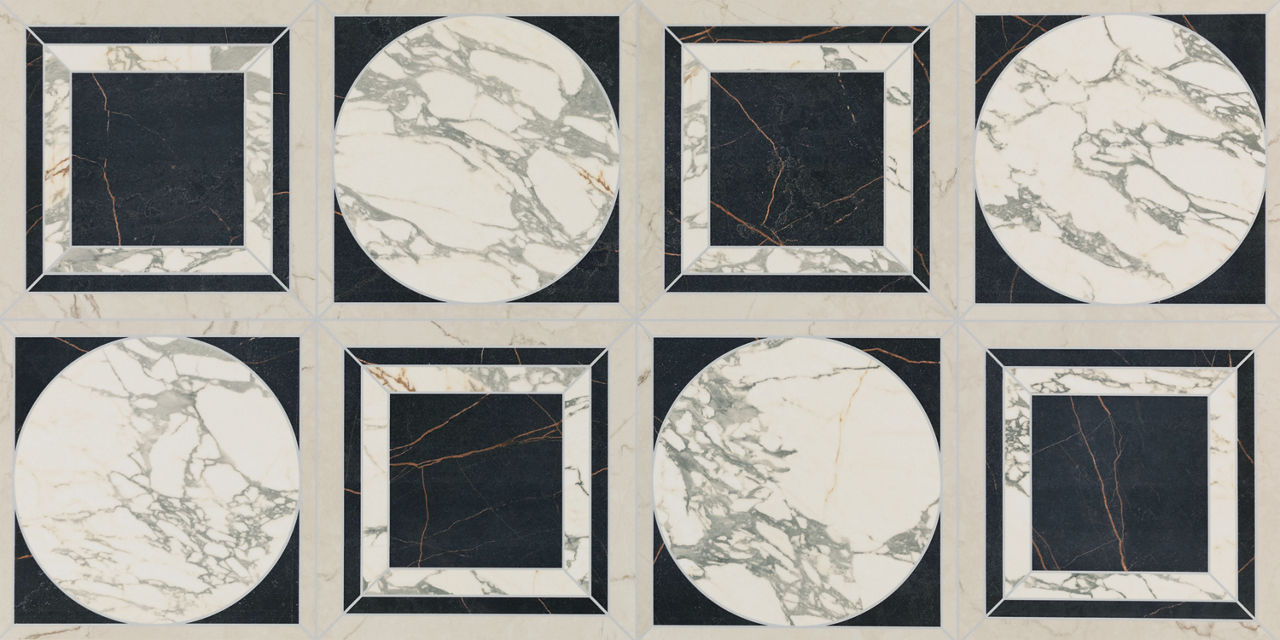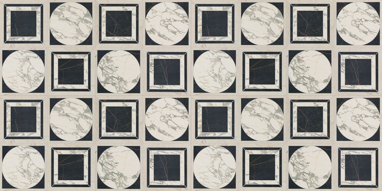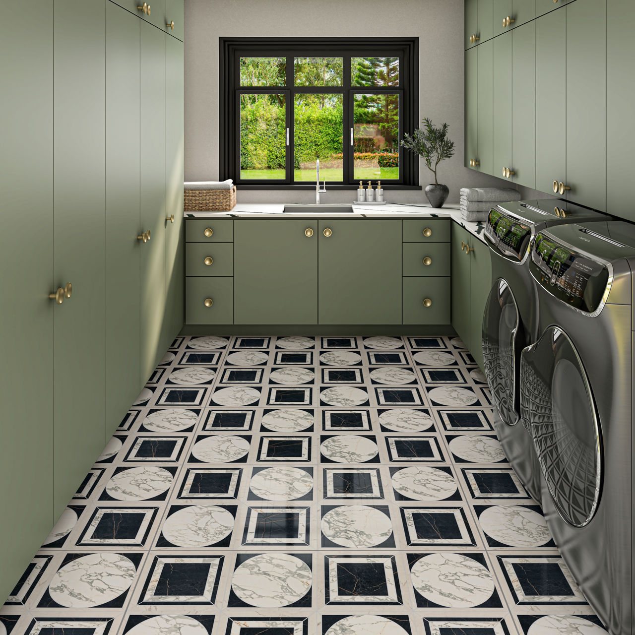 Elevate your space with Sovran, a large-format art deco tile that blends the look of marble elegance with porcelain strength. Available in eight striking patterns, this art deco floor tile brings timeless luxury and seamless style to every room.