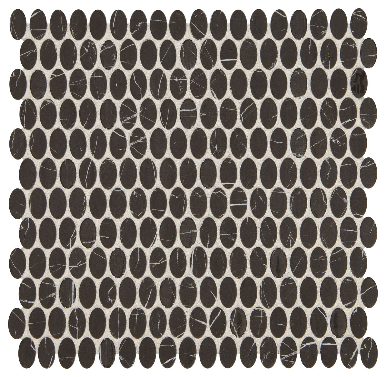 Innovative glass mosaic tile that looks like marble brings elegant style to your backsplash. Available in small ovals or picket shapes.