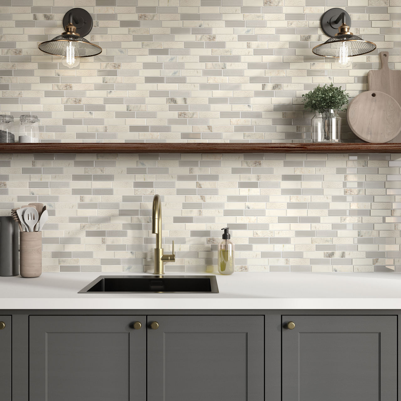 Installing mosaic to the wall or backsplash has never been simpler. Minute Mosaix™ eliminates messy grout for quicker, easier installation. Available in beautiful natural stone and glass designs.