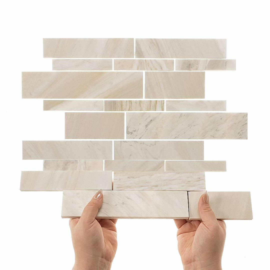 Sublimity stone mosaics deliver the sublime design and authenticity that only mother nature herself could create. Beautiful geometric designs in gray and white natural stone provides simple access to luxurious details that differentiate living spaces.