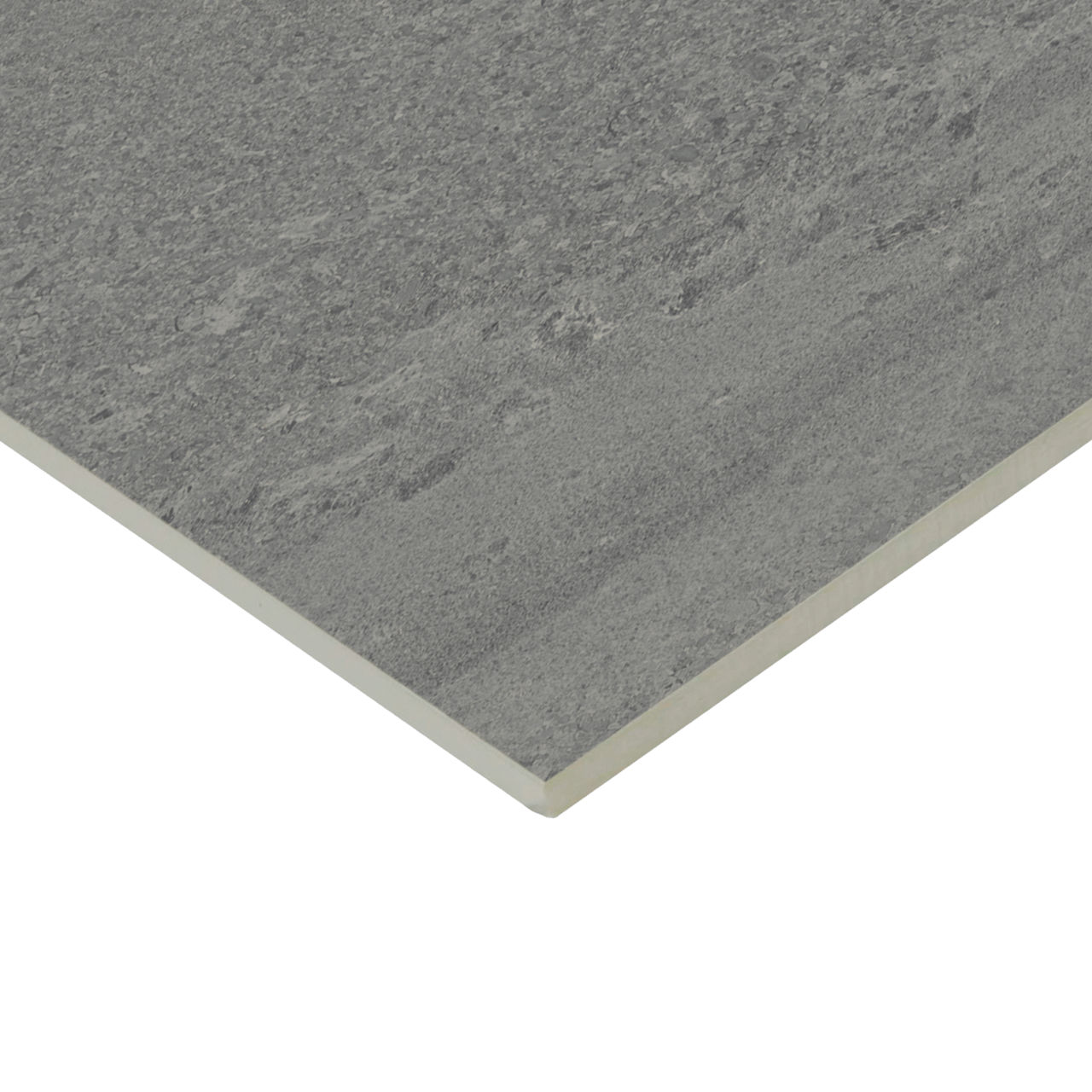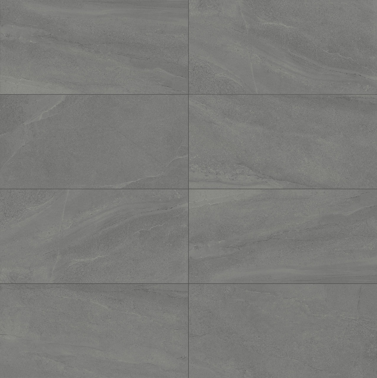 Gray stone-look porcelain tile in Armor. A 24X48 matte tile for modern design applications.