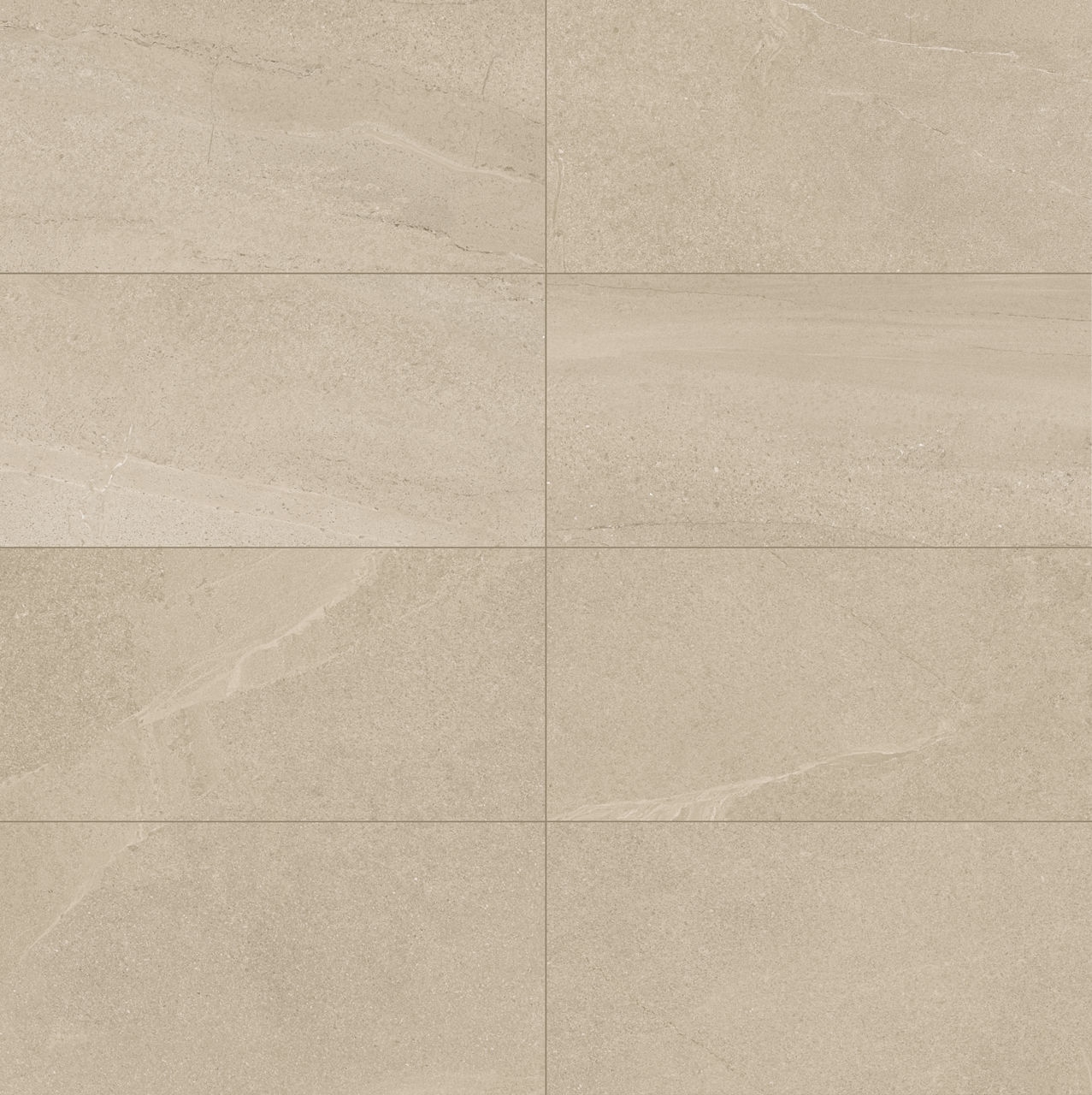 Calgary Fawn 24X48 stone-look porcelain tile features a refined natural aesthetic in durable ColorBody construction. Designed in a 24X48 format, it delivers large-format design with minimal grout lines. Its StepWise slip-resistant matte enhances performance and visual depth, making it ideal for floor and wall applications.