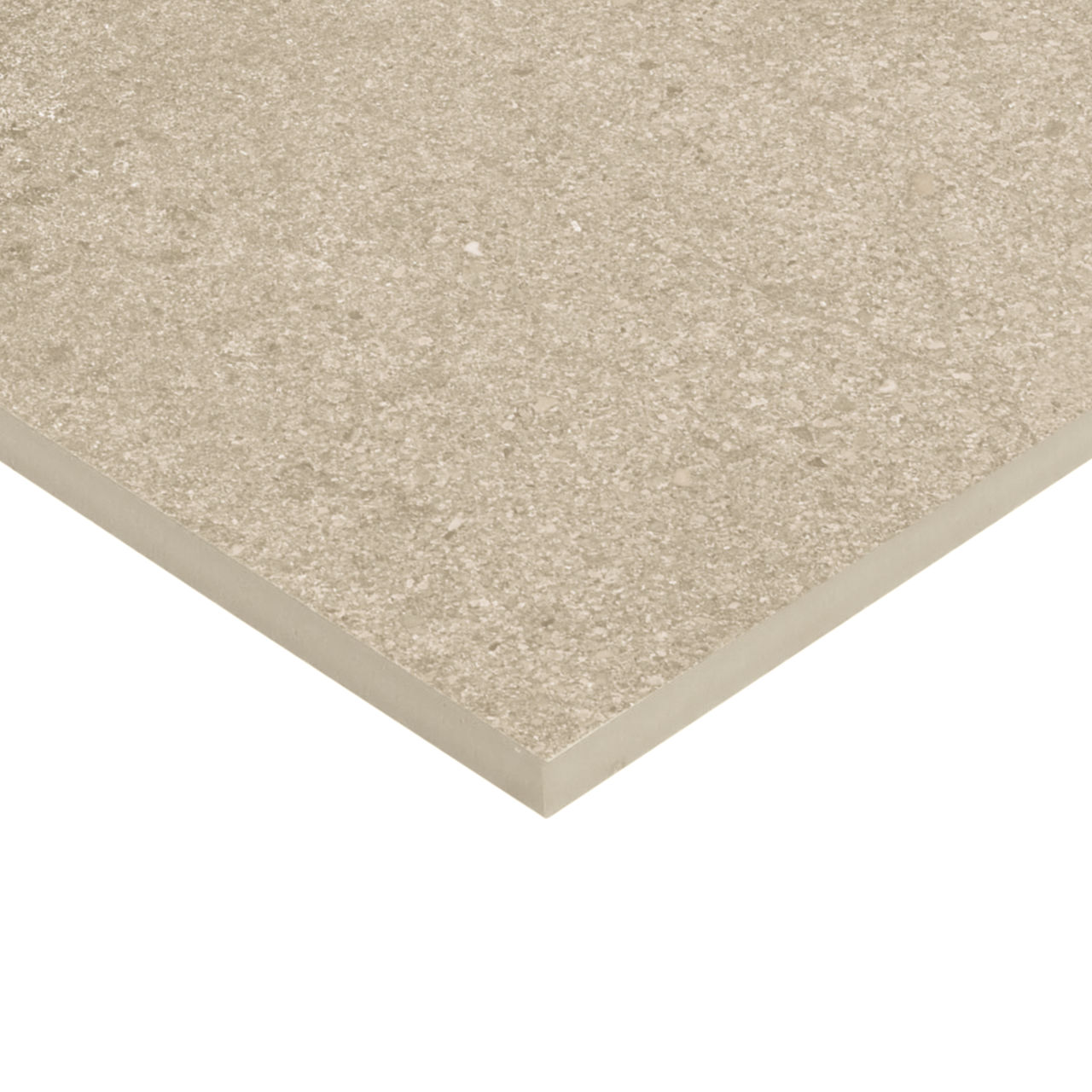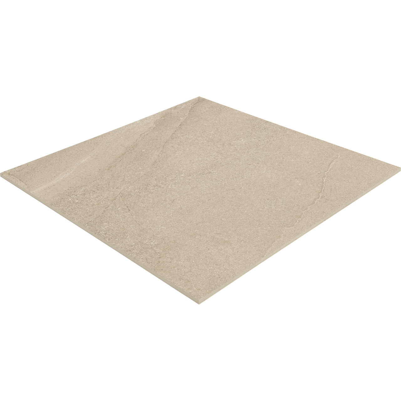 This beige stone-look tile offers a clean, natural aesthetic with durable performance for versatile spaces.