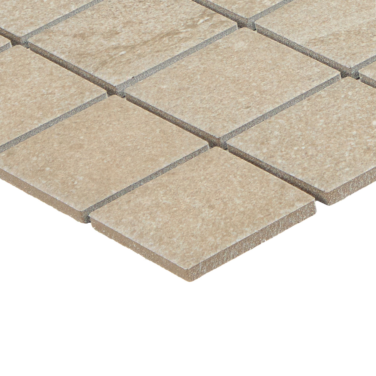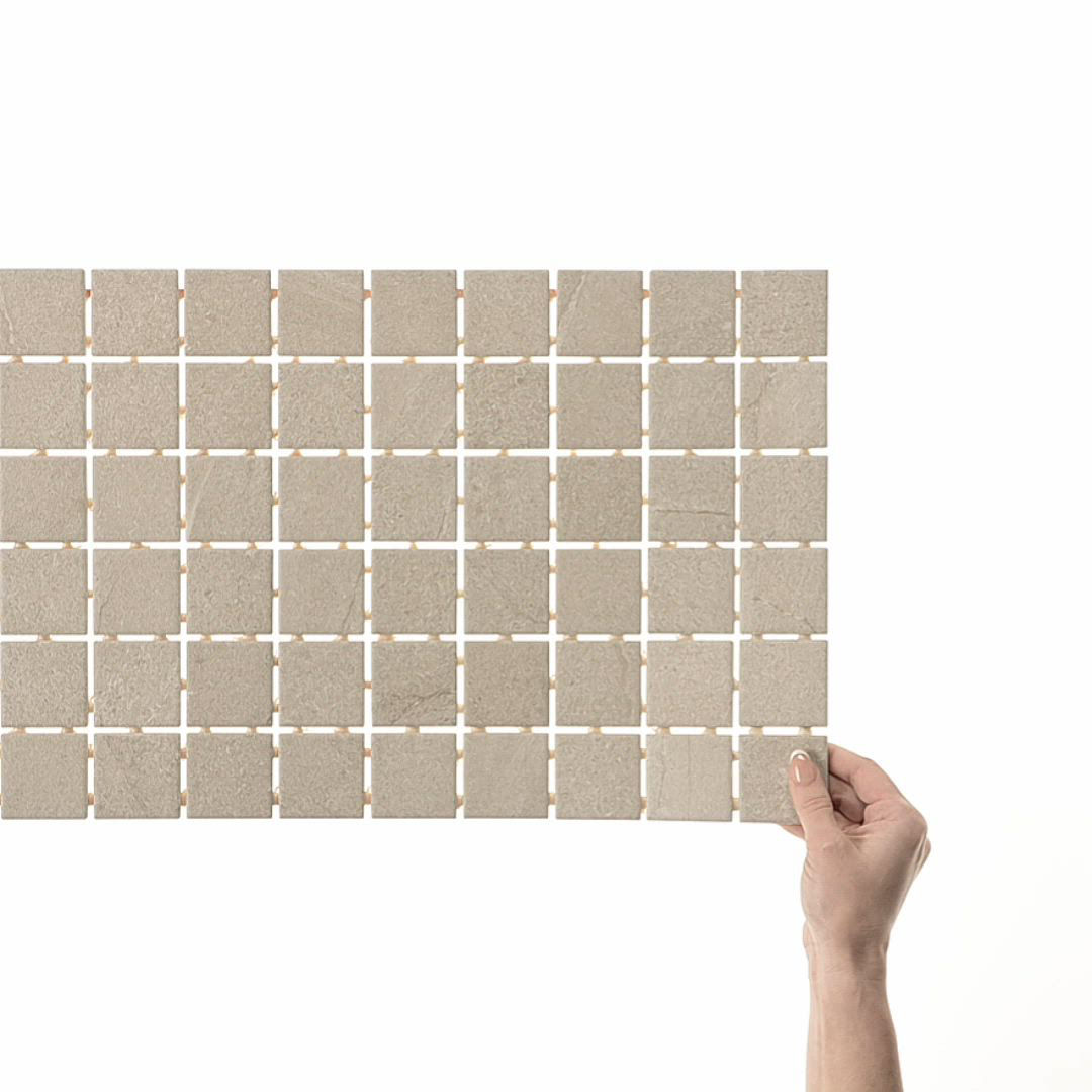 Calgary Fawn 2X2 stone-look porcelain tile features a refined natural aesthetic in durable ColorBody construction. Designed in a 2X2 format, it delivers mosaic format for detailed surfaces. Its StepWise slip-resistant matte enhances performance and visual depth, making it ideal for floor and wall applications.
