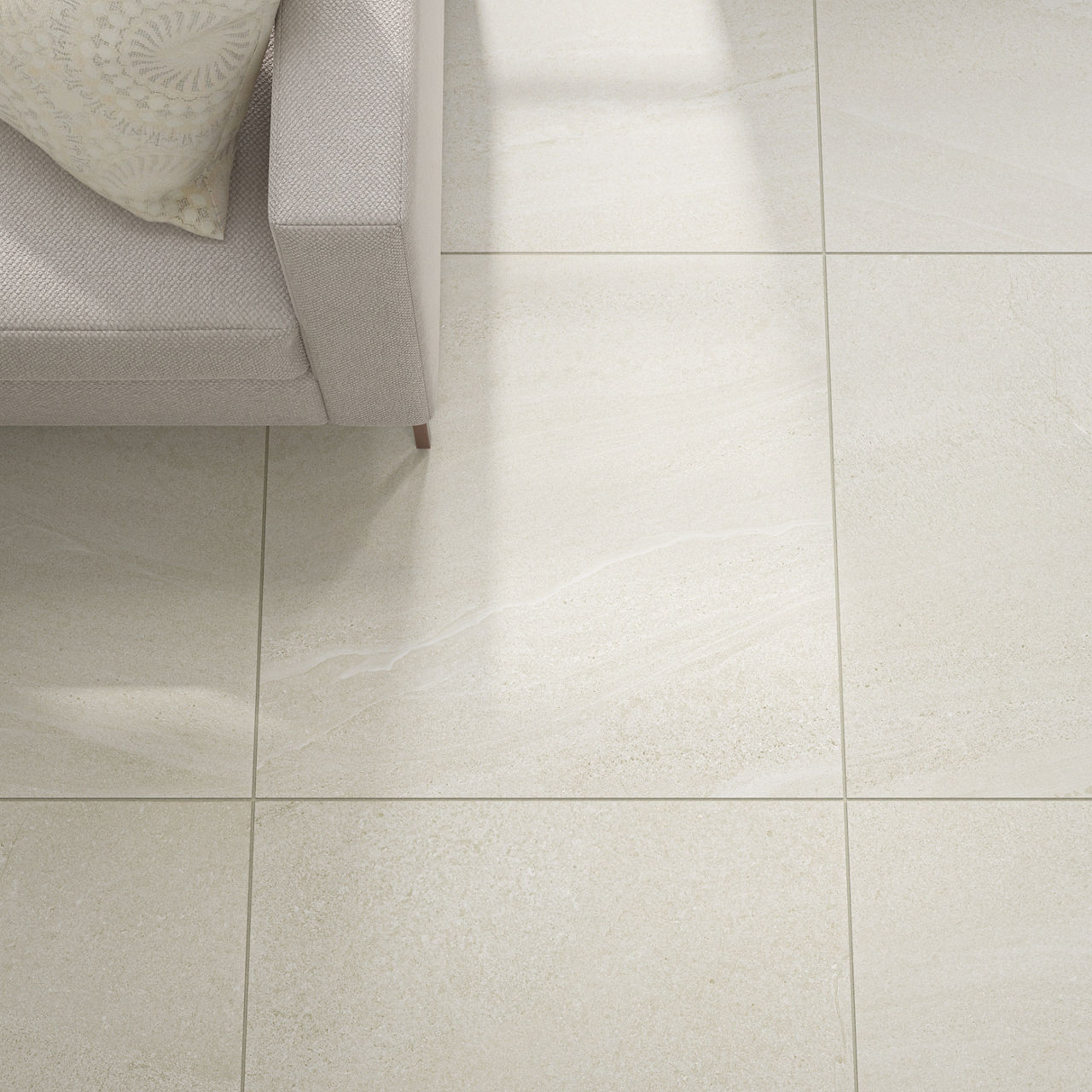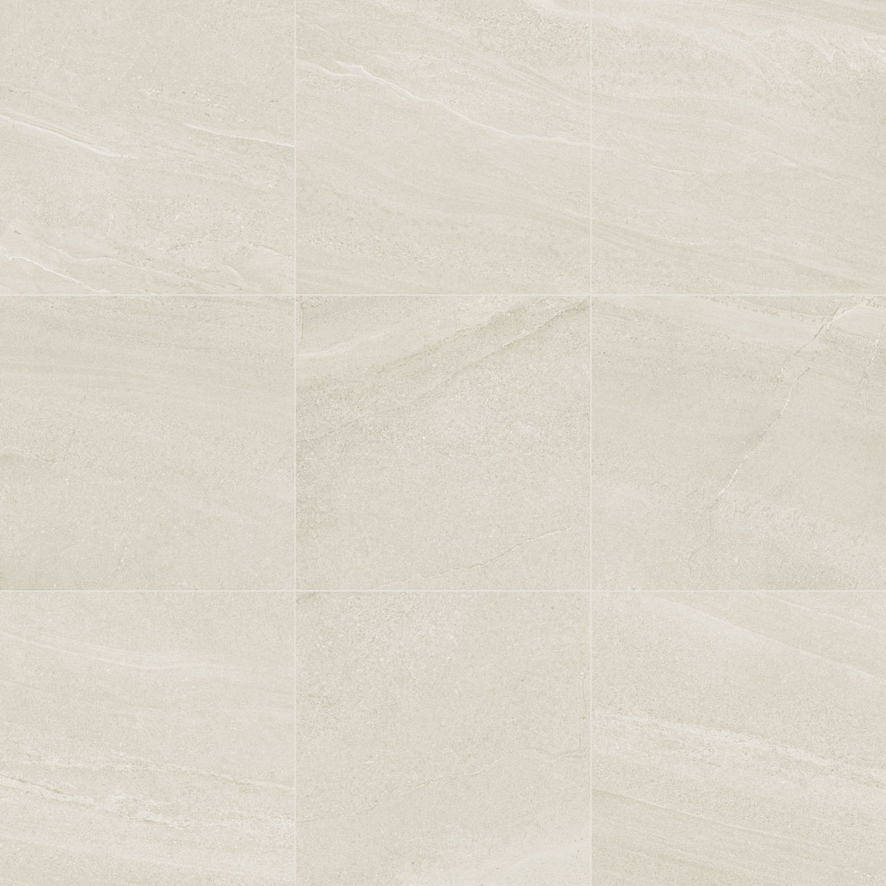 White stone-look porcelain tile in Legacy. A 24X24 matte tile for modern design applications.