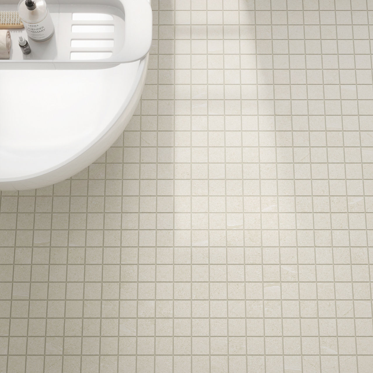 White stone-look porcelain tile in Legacy. A 2X2 matte tile for modern design applications.