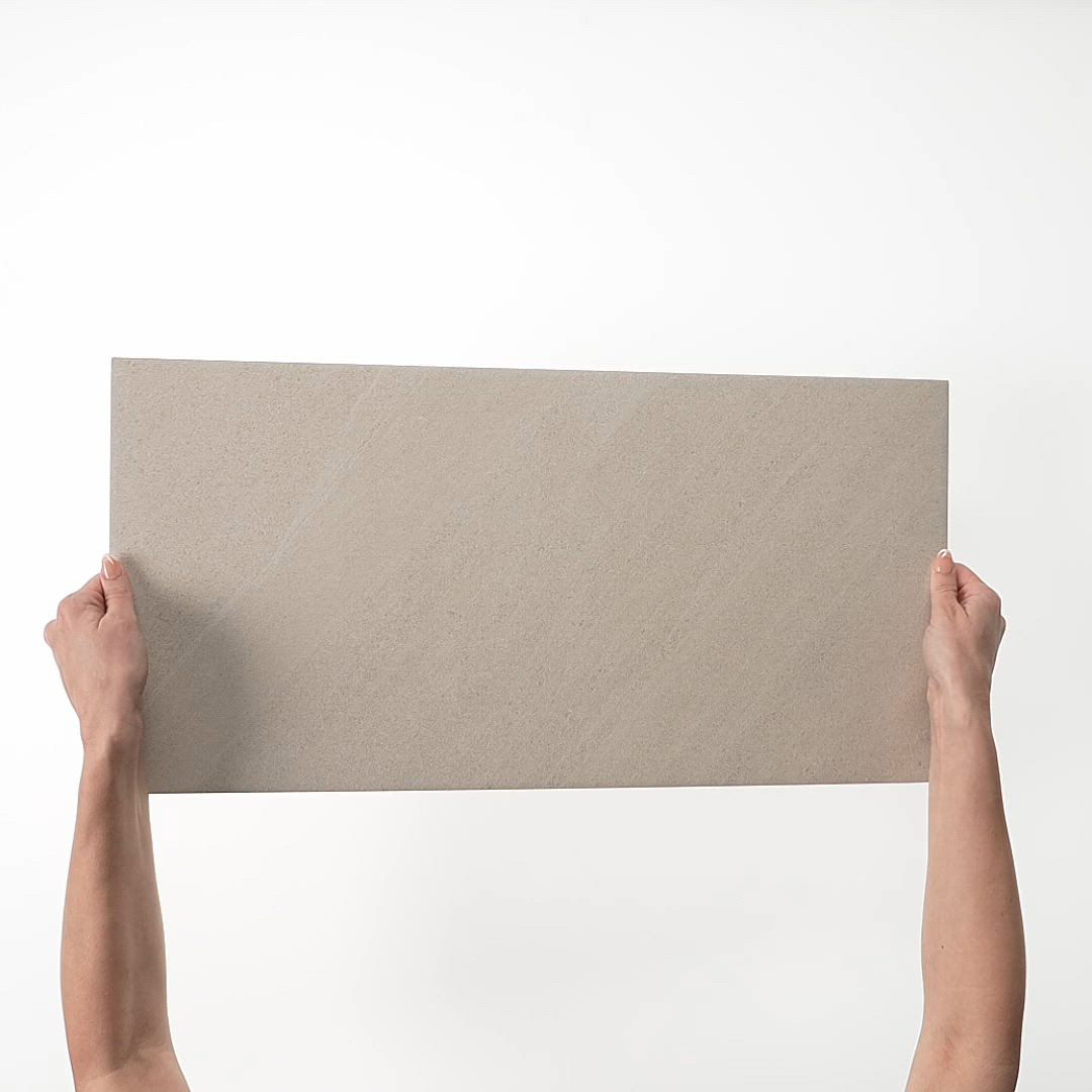 Beige stone-look ceramic tile in Calm Beige. A 12X24 matte tile designed for balanced, modern spaces.
