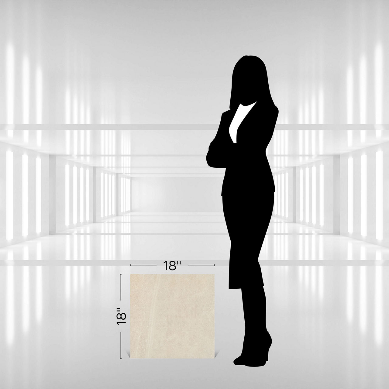 Beige stone-look ceramic tile in Calm Beige. A 18X18 matte tile designed for balanced, modern spaces.