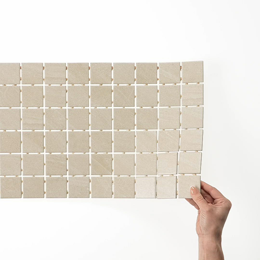 Choice Calm Beige 2X2 stone-look ceramic tile features a natural aesthetic with varied tones and subtle movement. Designed in a 2X2 format, it delivers a mosaic format ideal for detailed and wet area applications. Its matte finish provides a soft, understated surface, making it ideal for floor and wall applications in residential and light commercial spaces.