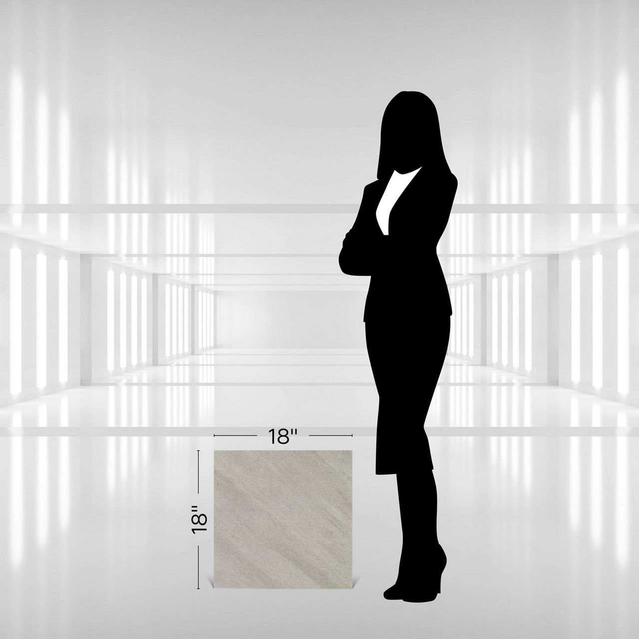 White stone-look ceramic tile in Everest White. A 18X18 matte tile designed for balanced, modern spaces.