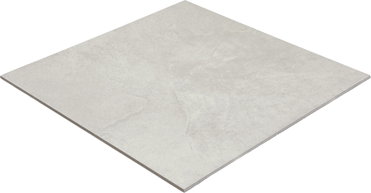 White stone-look ceramic tile in Weathered White. A 18X18 matte tile designed for balanced, modern spaces.