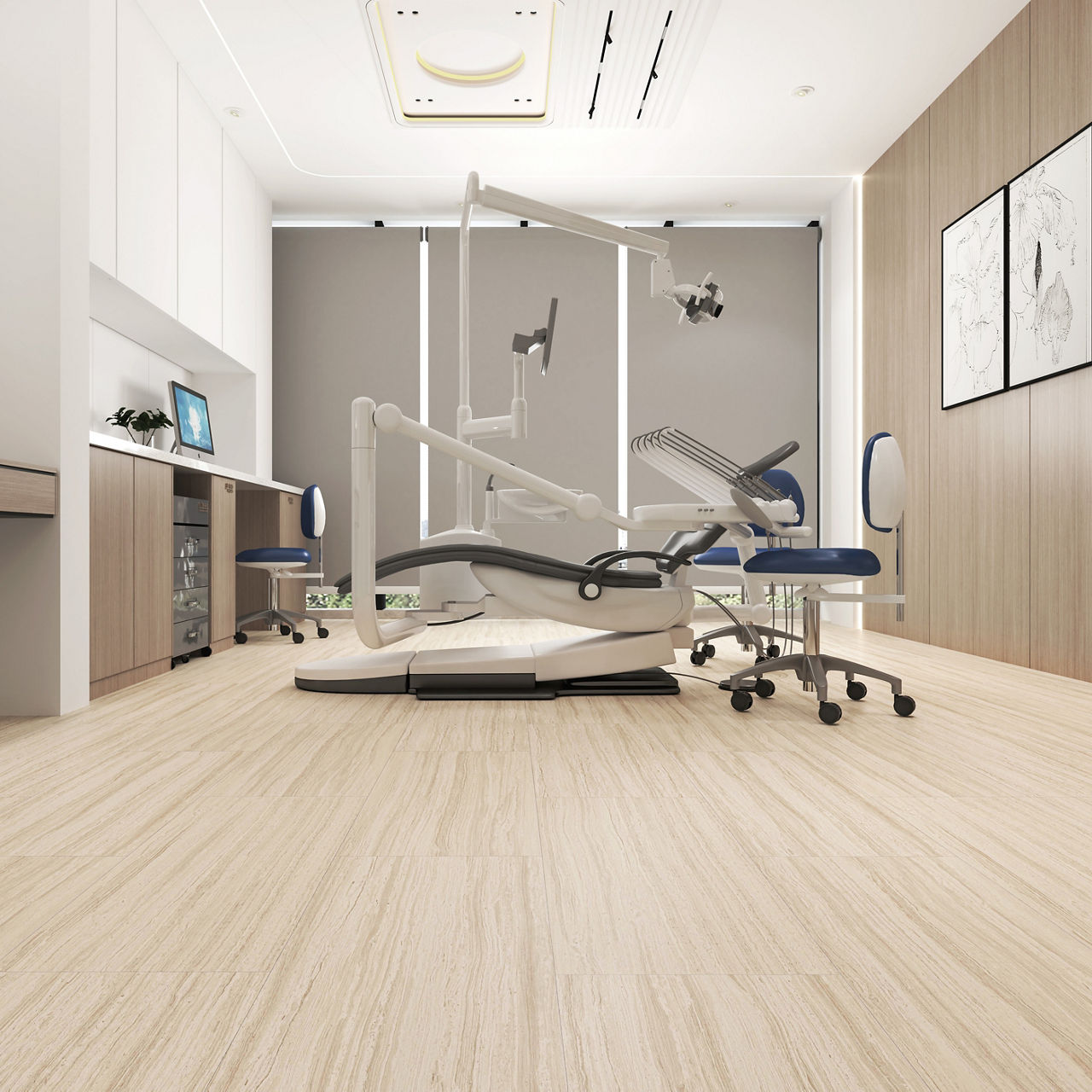Multimedia Sand 18X36 TitanGuard luxury vinyl tile features a stone look design with embossed texture. Designed in a 18X36 format, it offers durability and modern style. Its TitanGuard finish enhances performance, making it ideal for commercial floors. A perfect choice for contemporary interiors. Natural variation in tone adds depth and realism specific to this color interpretation.