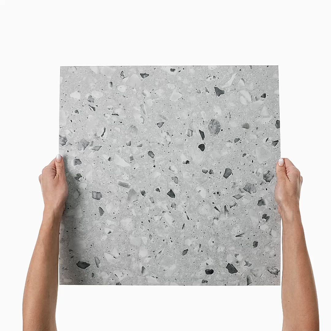Collection Name Multimedia Terrazzo Color Code MZ32 Color Name Delta Color Family Gray Nominal Size 18X18 Actual Size 18.00 X 18.00 Nominal Thickness 5.0MM Mount Method Loose Size Category Medium Product Shape Square Country of Origin China Finish TitanGuard Technology Body Type Flexible Glue Down Vinyl Tile Edge Non Rectified Edge Description Bevel Bevel MICROBEVEL Dimensional Design Embossed Installation Glue Down Construction COMMERCIAL GRADE LUXURY VINYL TILE 100% VIRGIN Wear Layer 20 MIL(0.508MM) Underlayment UNATTACHED