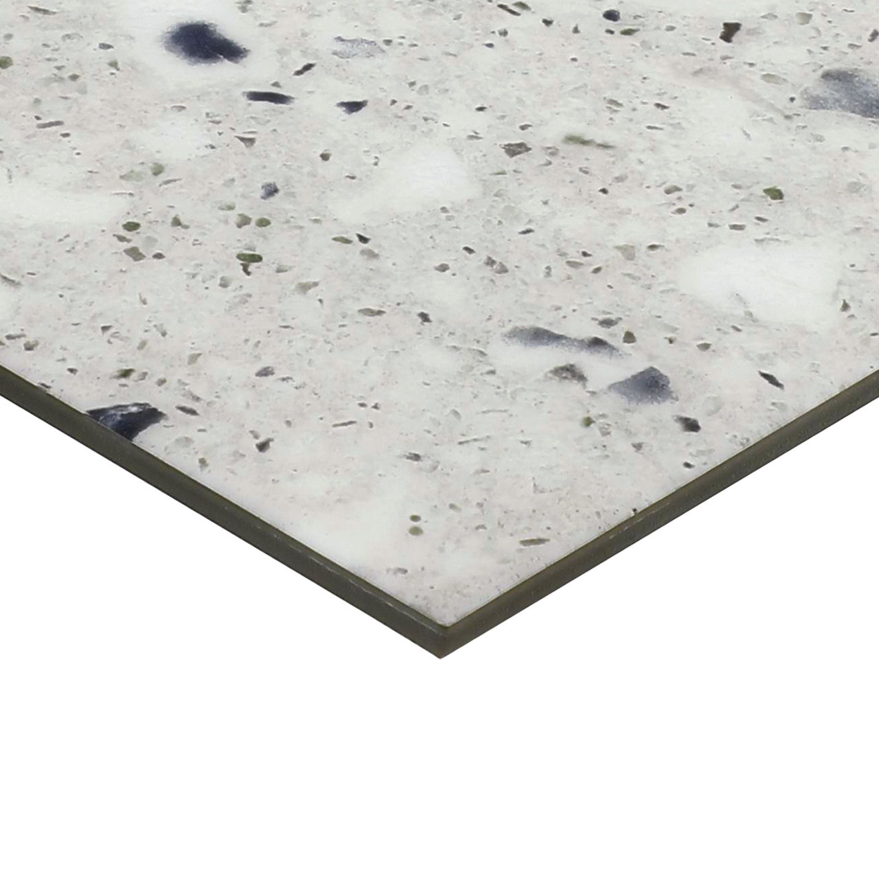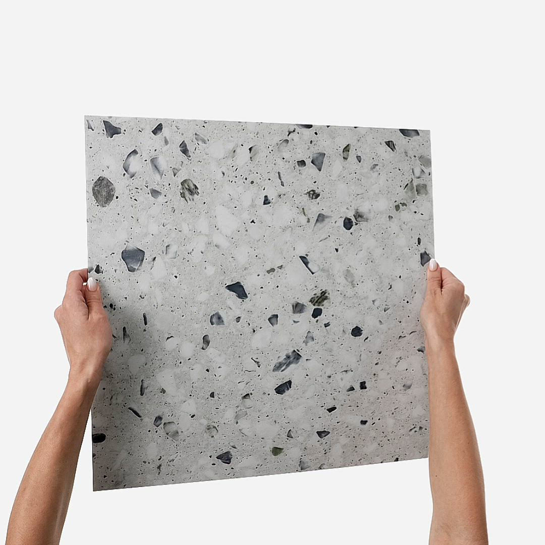 Collection Name Multimedia Terrazzo Color Code MZ33 Color Name Lake Color Family Green Nominal Size 18X18 Actual Size 18.00 X 18.00 Nominal Thickness 5.0MM Mount Method Loose Size Category Medium Product Shape Square Country of Origin China Finish TitanGuard Technology Body Type Flexible Glue Down Vinyl Tile Edge Non Rectified Edge Description Bevel Bevel MICROBEVEL Dimensional Design Embossed Installation Glue Down Construction COMMERCIAL GRADE LUXURY VINYL TILE 100% VIRGIN Wear Layer 20 MIL(0.508MM) Underlayment UNATTACHED