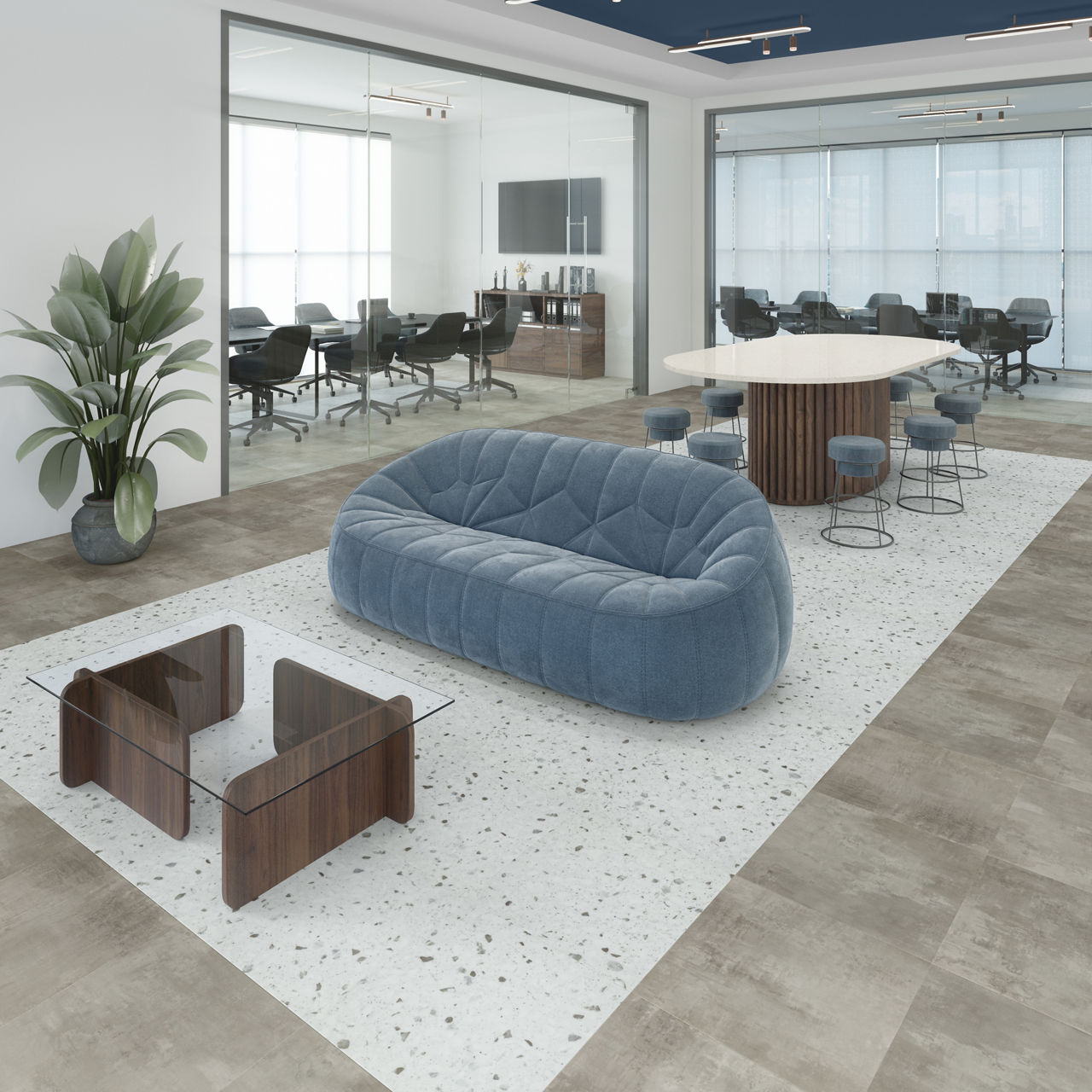 Multimedia Stream 18X18 TitanGuard luxury vinyl tile features a terrazzo look design with embossed texture. Designed in a 18X18 format, it offers durability and modern style. Its TitanGuard finish enhances performance, making it ideal for commercial floors. A perfect choice for contemporary interiors. The fleck distribution is uniquely balanced to create visual movement across the surface.