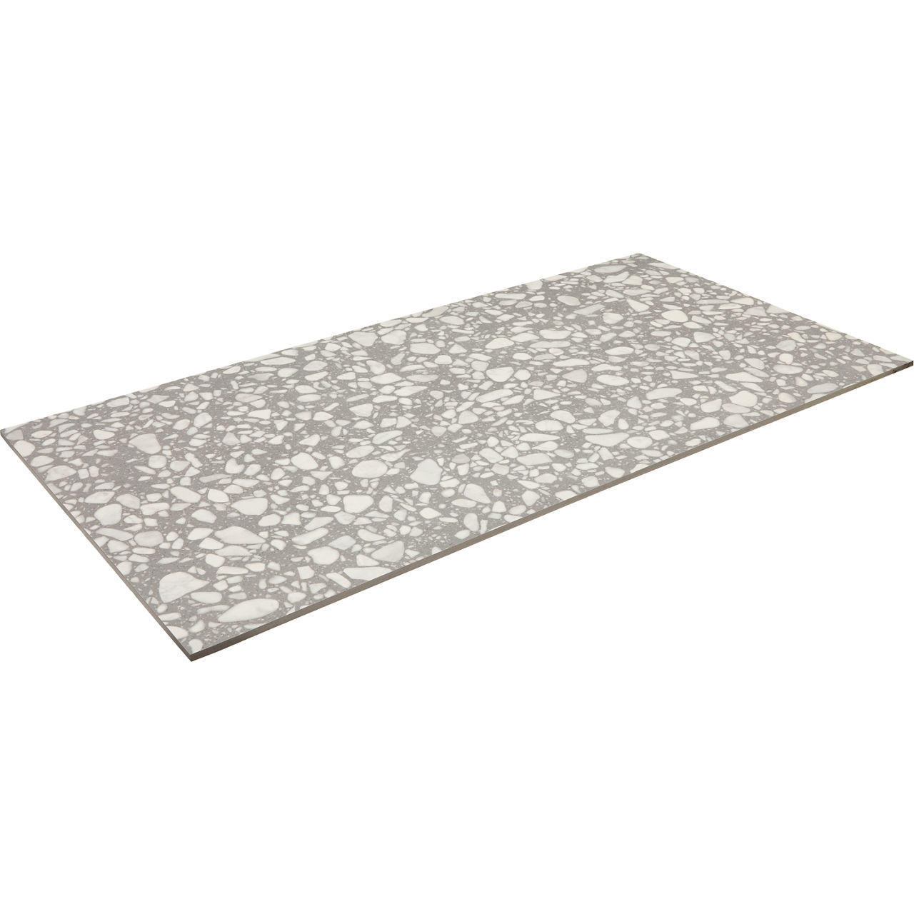 Outlander Dusk 24X48 Grande terrazzo-look porcelain tile features a balanced aggregate distribution in durable ColorBody construction. Designed in a 24X48 format, it delivers a large-format design that minimizes grout lines with a dark tonal palette. Its StepWise slip-resistant matte finish enhances performance, making it ideal for indoor and outdoor applications.