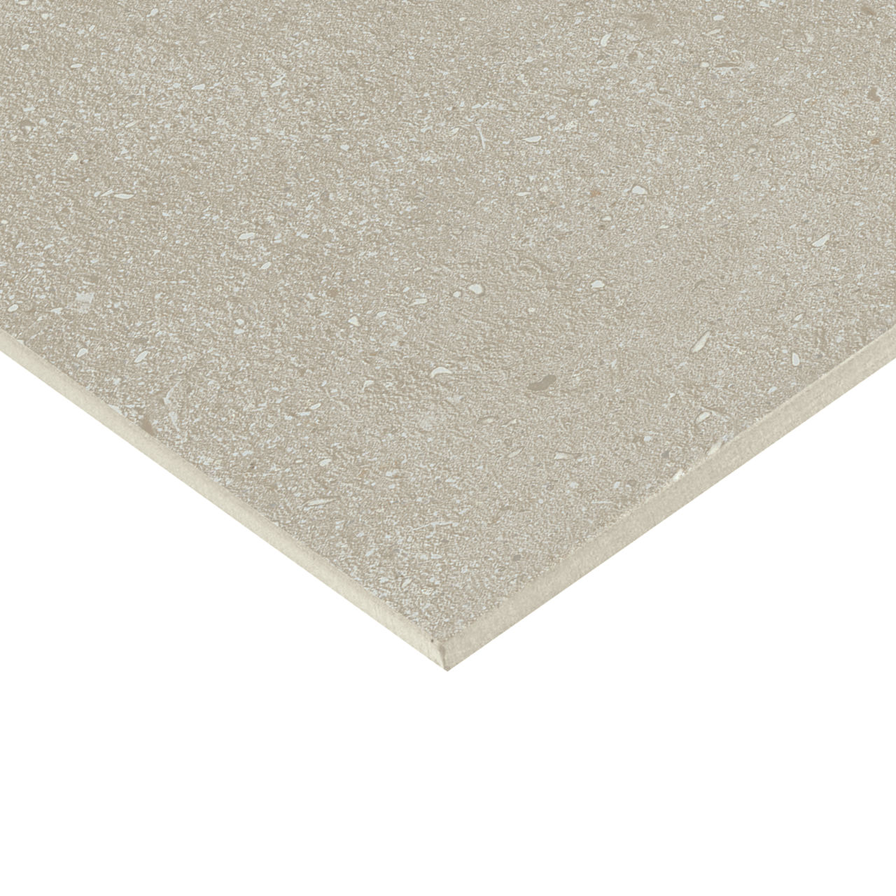 Outlander Echo 24X48 Palazzo terrazzo-look porcelain tile features a dense, intricate aggregate composition in durable ColorBody construction. Designed in a 24X48 format, it delivers a large-format design that minimizes grout lines with a mid-tone tonal palette. Its StepWise slip-resistant matte finish enhances performance, making it ideal for indoor and outdoor applications.