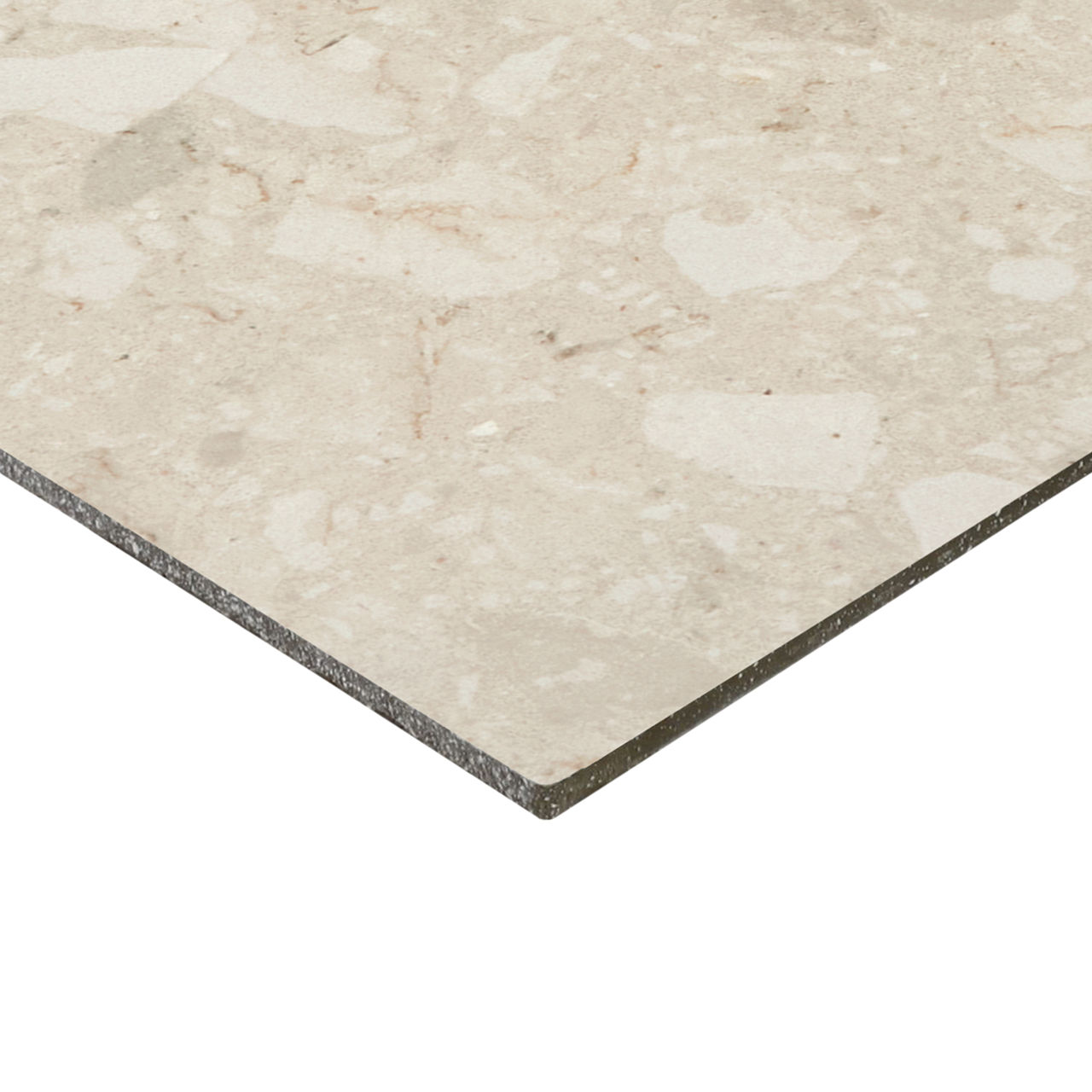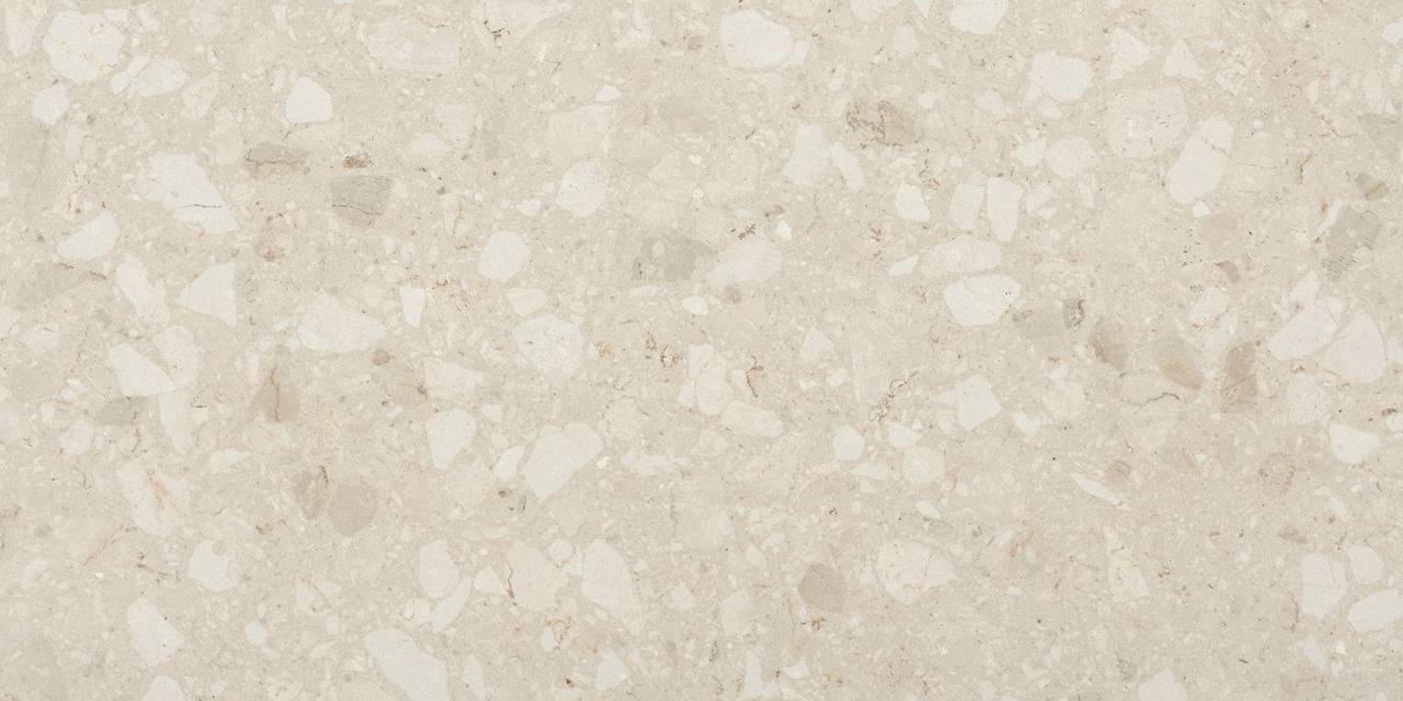 This light terrazzo-look tile features a Medio pattern with durable performance for versatile spaces.