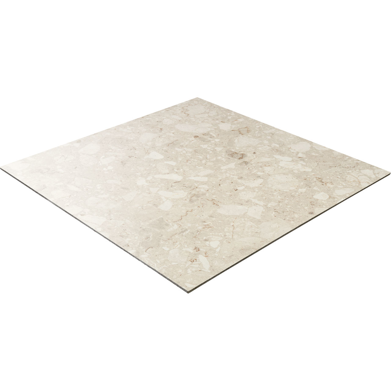 Light terrazzo-look porcelain tile in Lumen. A 24X24 satin polished tile with Grande pattern for modern design.