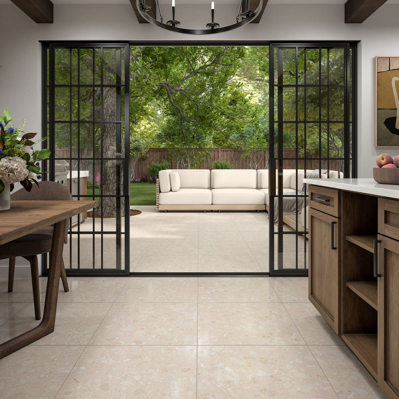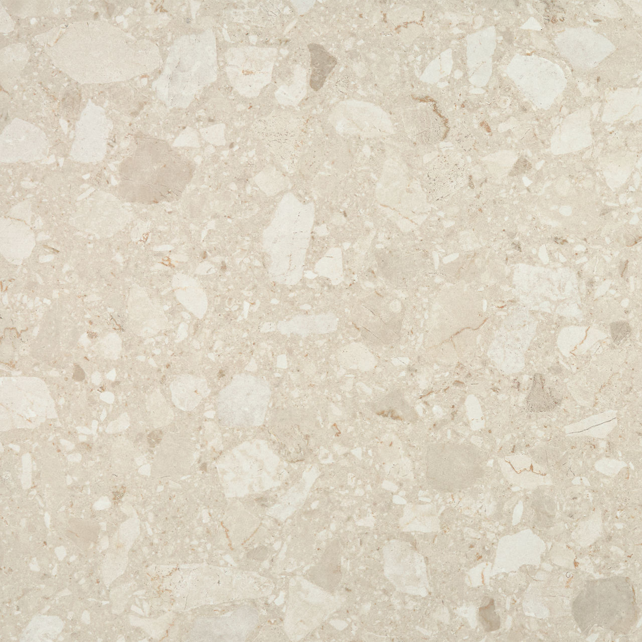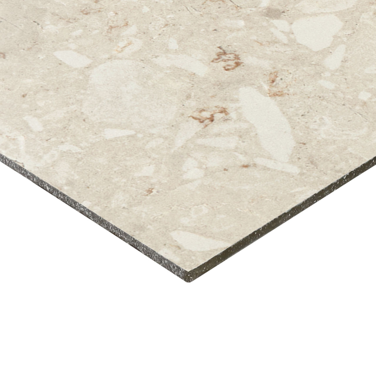 This light terrazzo-look tile features a Grande pattern with durable performance for versatile spaces.