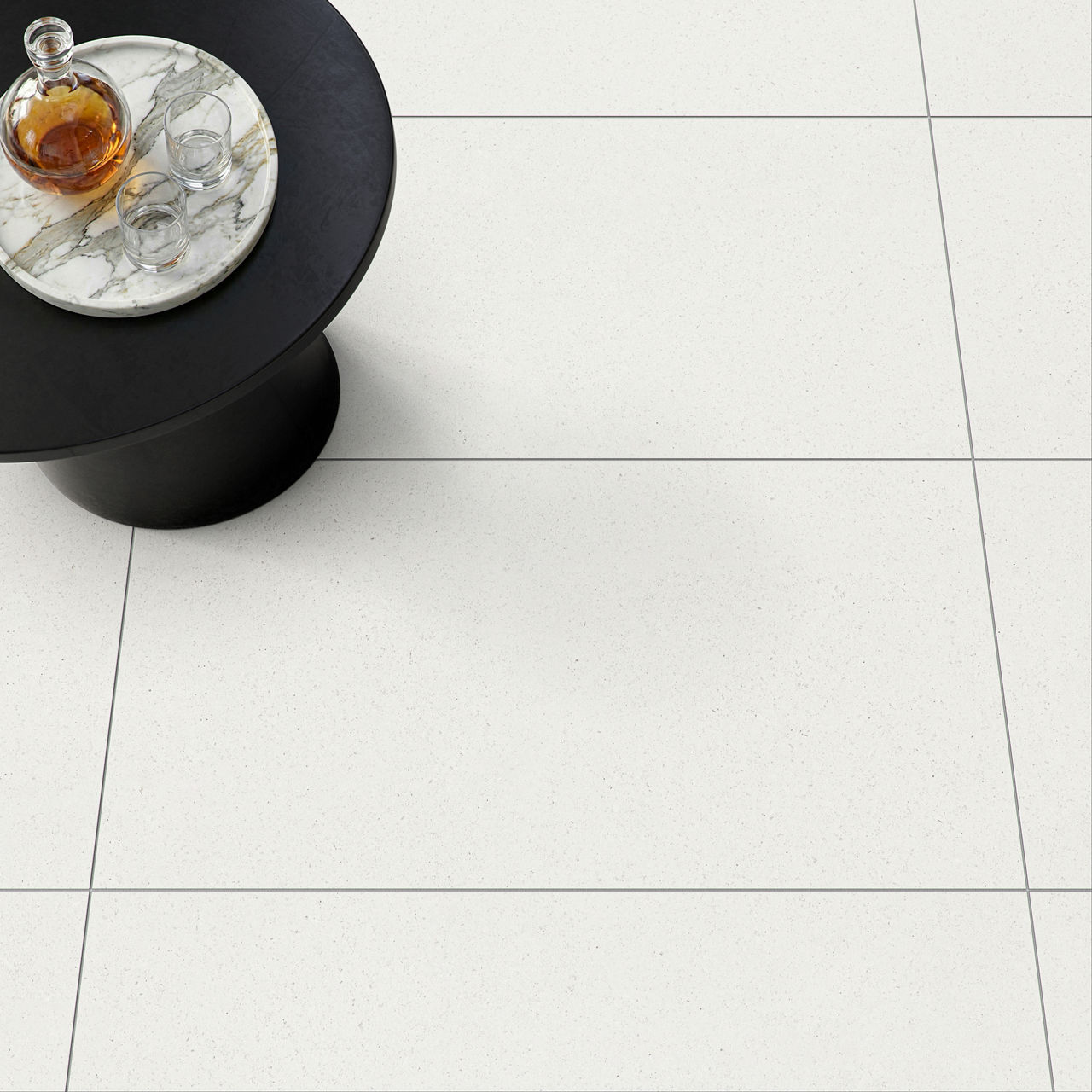 This dark terrazzo-look tile features a Palazzo pattern with durable performance for versatile spaces.