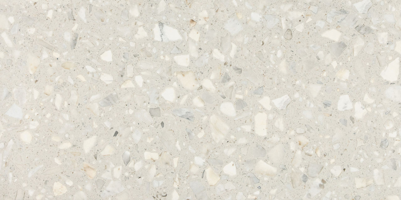 This light terrazzo-look tile features a Medio pattern with durable performance for versatile spaces.