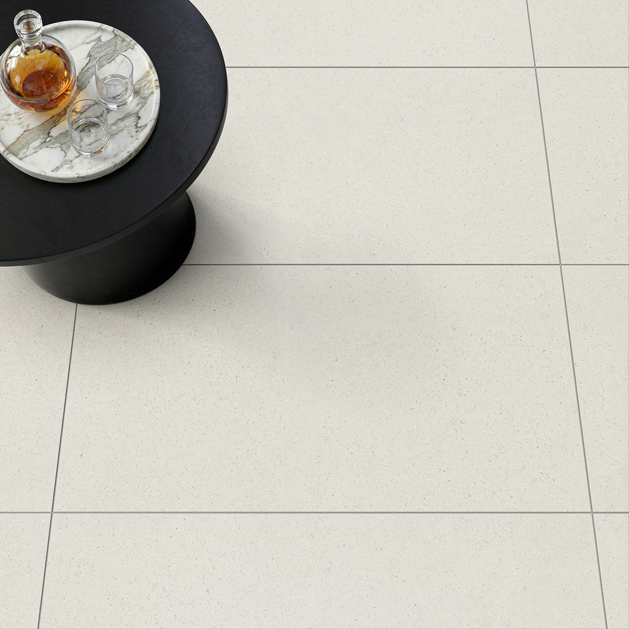 Light terrazzo-look porcelain tile in Moonlight. A 24X48 matte tile with Palazzo pattern for modern design.