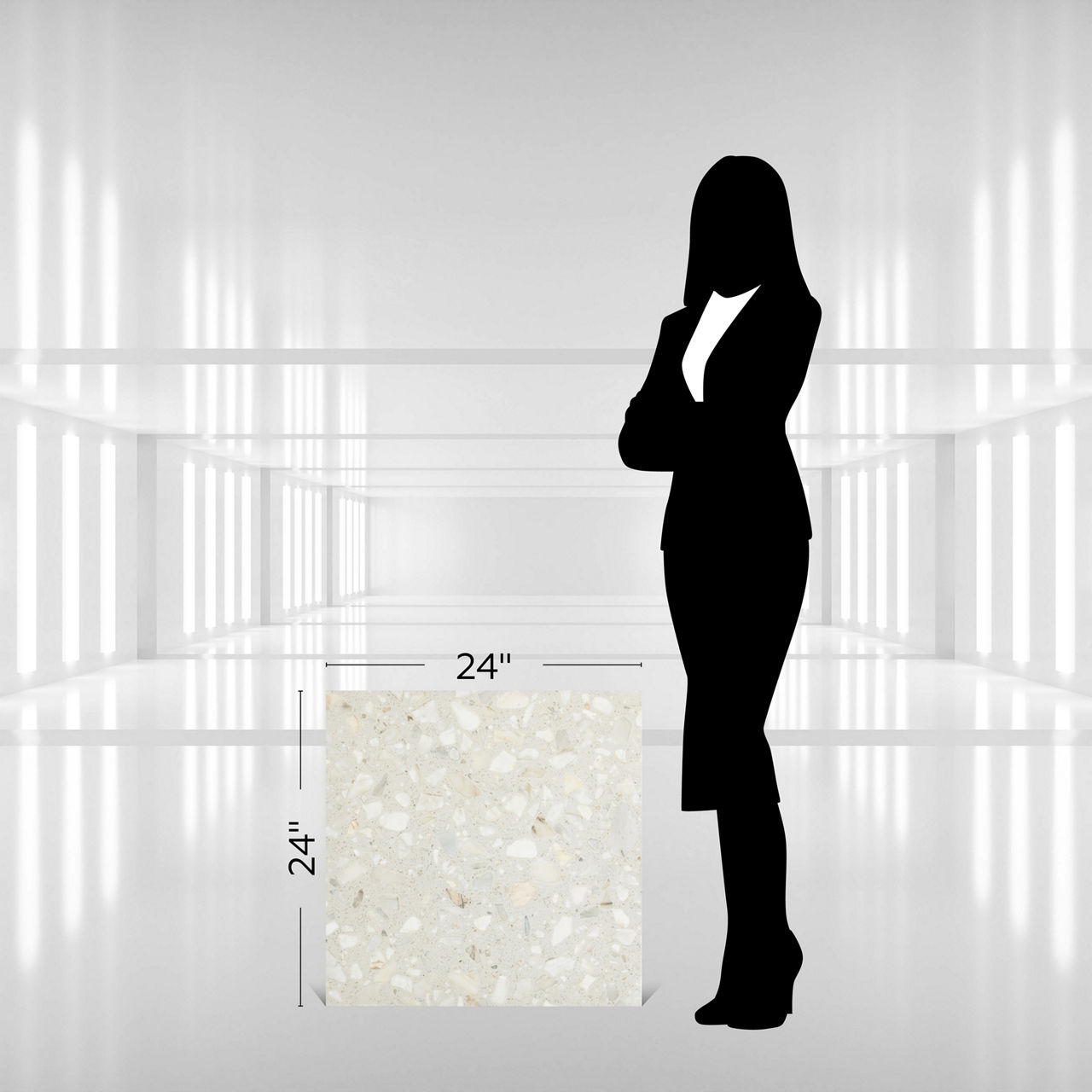 For a full list of colors, visit https://www.daltile.com/products/terrazzo-look/outlander/moonlight-square-24x24-grande-stepwise-matte