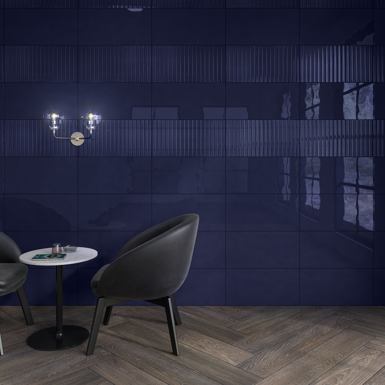 Navy, Rectangle, 12X24, Fluted, Glossy