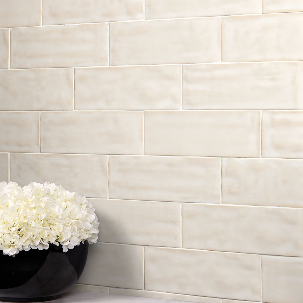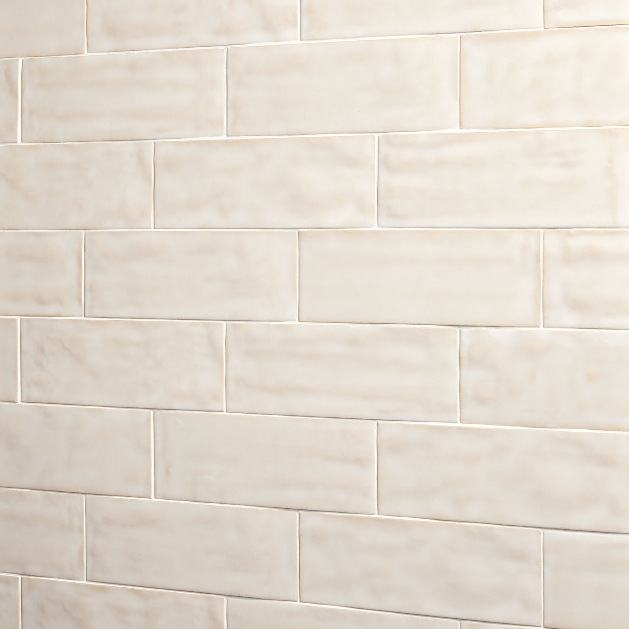 Beige ceramic wall tile in Bone. A 4x12 glossy tile with handcrafted detail for warm, linear wall applications.