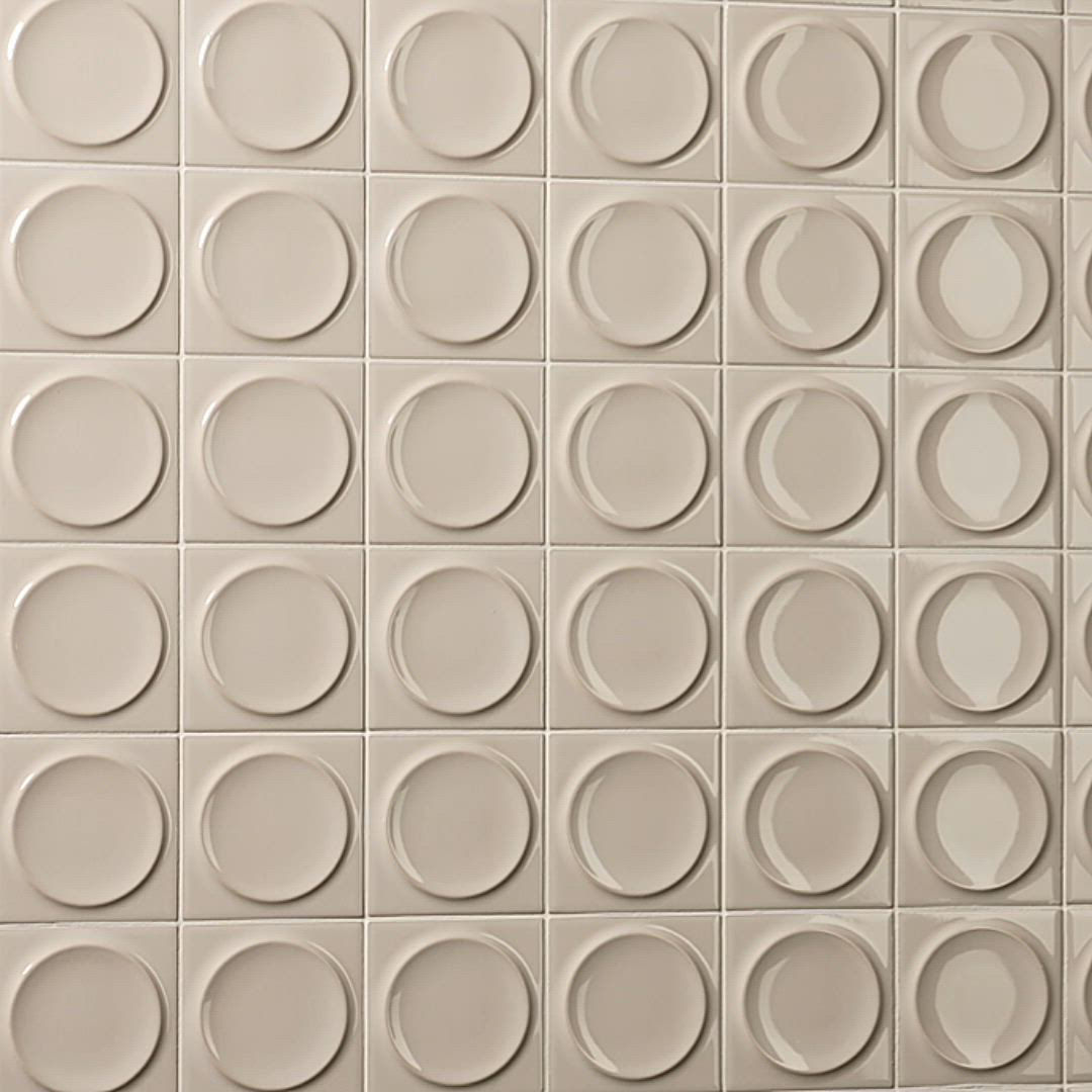 This beige ceramic wall tile showcases a circular design with warm tones and glossy depth for stylish backsplashes and accent walls.
