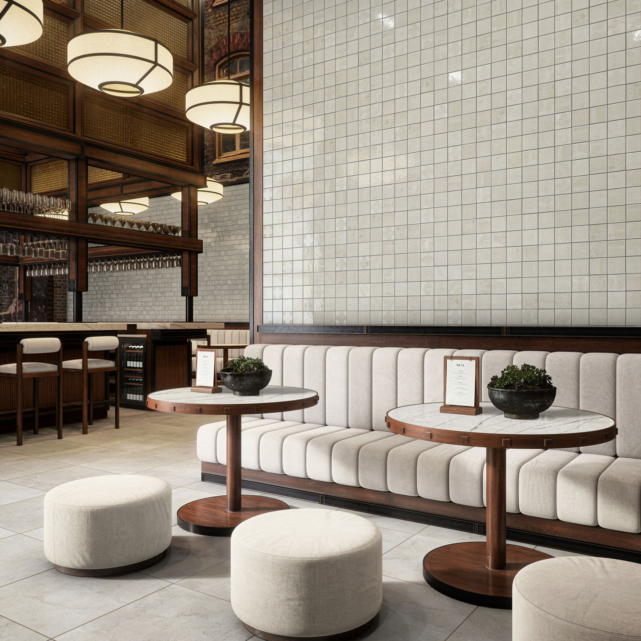 This white handcrafted ceramic wall tile brings artisanal texture and glossy dimension to backsplashes and feature walls.