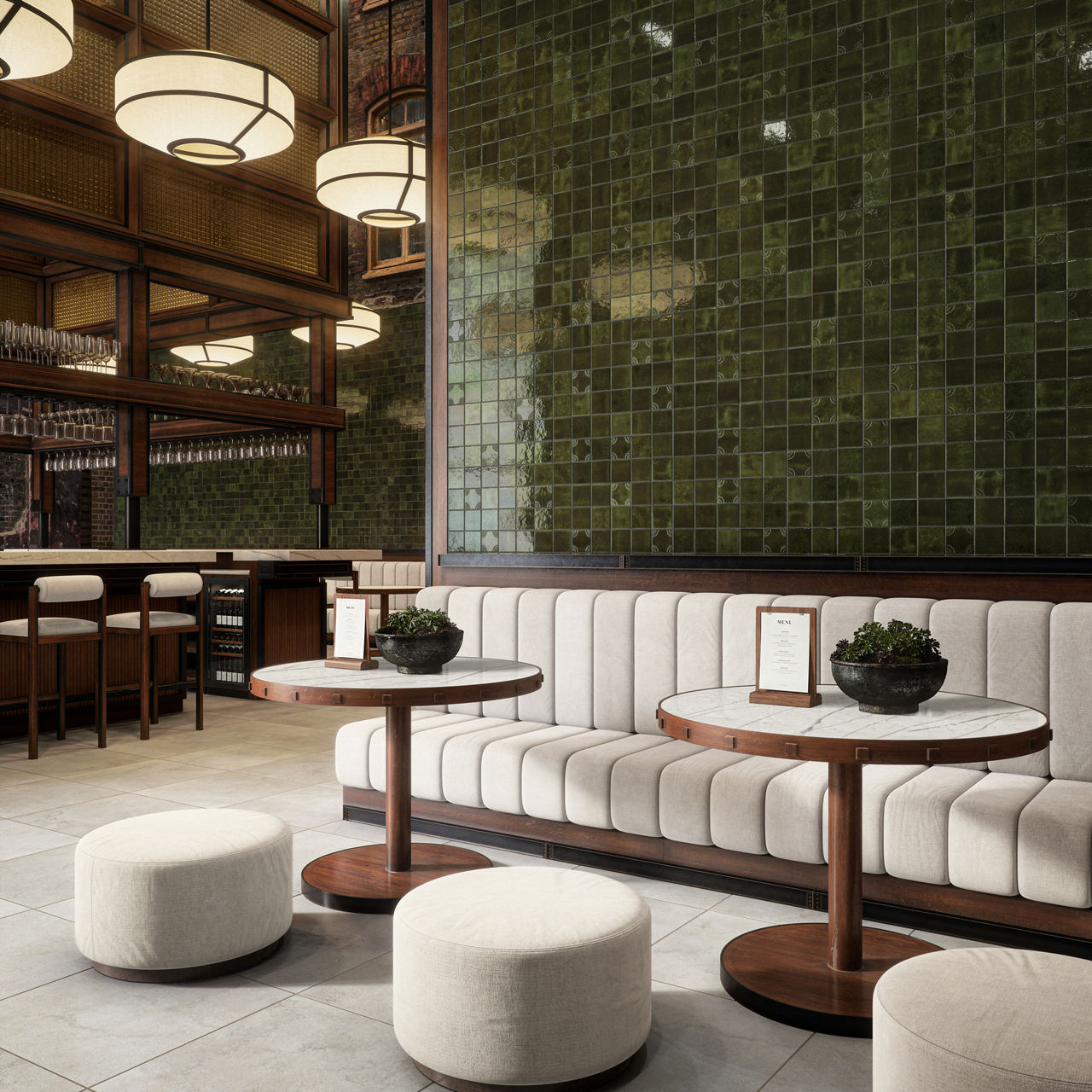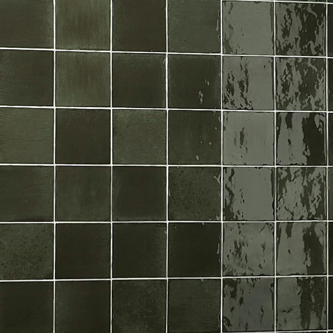 This green handcrafted ceramic wall tile brings artisanal texture and glossy dimension to backsplashes and feature walls.