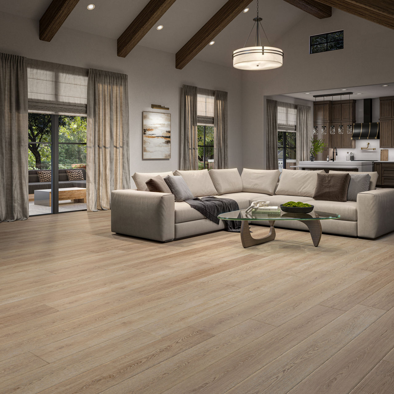 Halverton brings handcrafted elegance to everyday living with rich wood visuals, ultra-realistic texture, and Styled Edge details that echo true hardwood. Its generous plank options create custom-feeling layouts, while an integrated acoustical pad adds a sense of quiet luxury beneath every step.